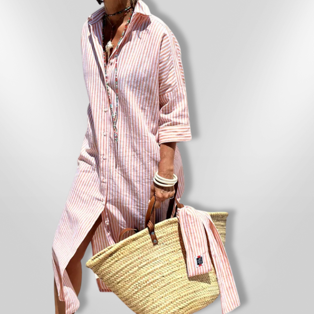 Bestelle jetzt dein Amanda Chic Gestreiftes Hemdkleid und genieße mühelosen Stil, Komfort und Raffinesse für jede Gelegenheit!