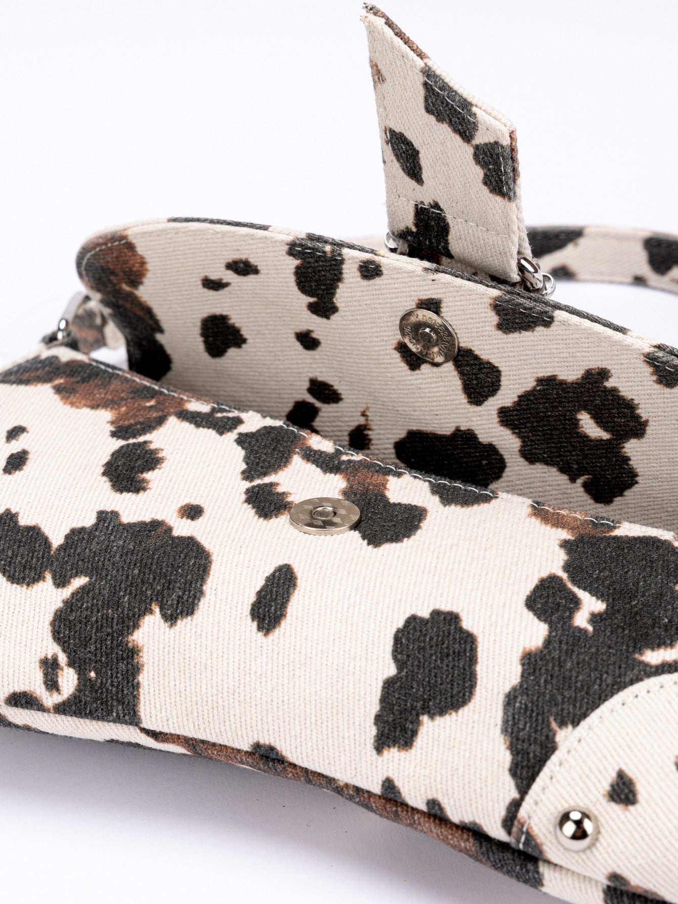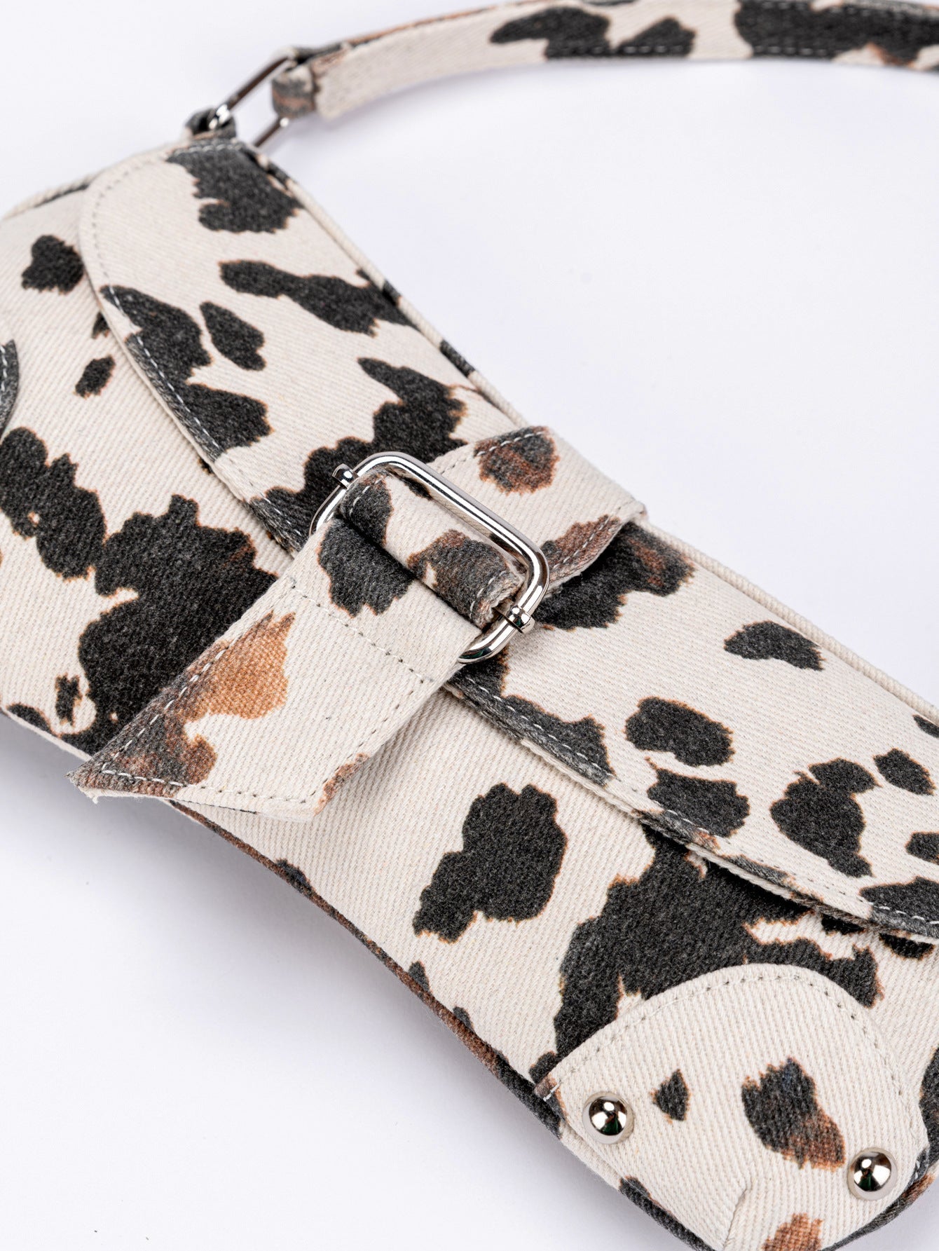Trendige Schultertasche im Y2K-Look – der auffällige Kuhflecken-Print macht sie zum Eyecatcher. Perfekt für Partys, City-Outfits und modische Statements.