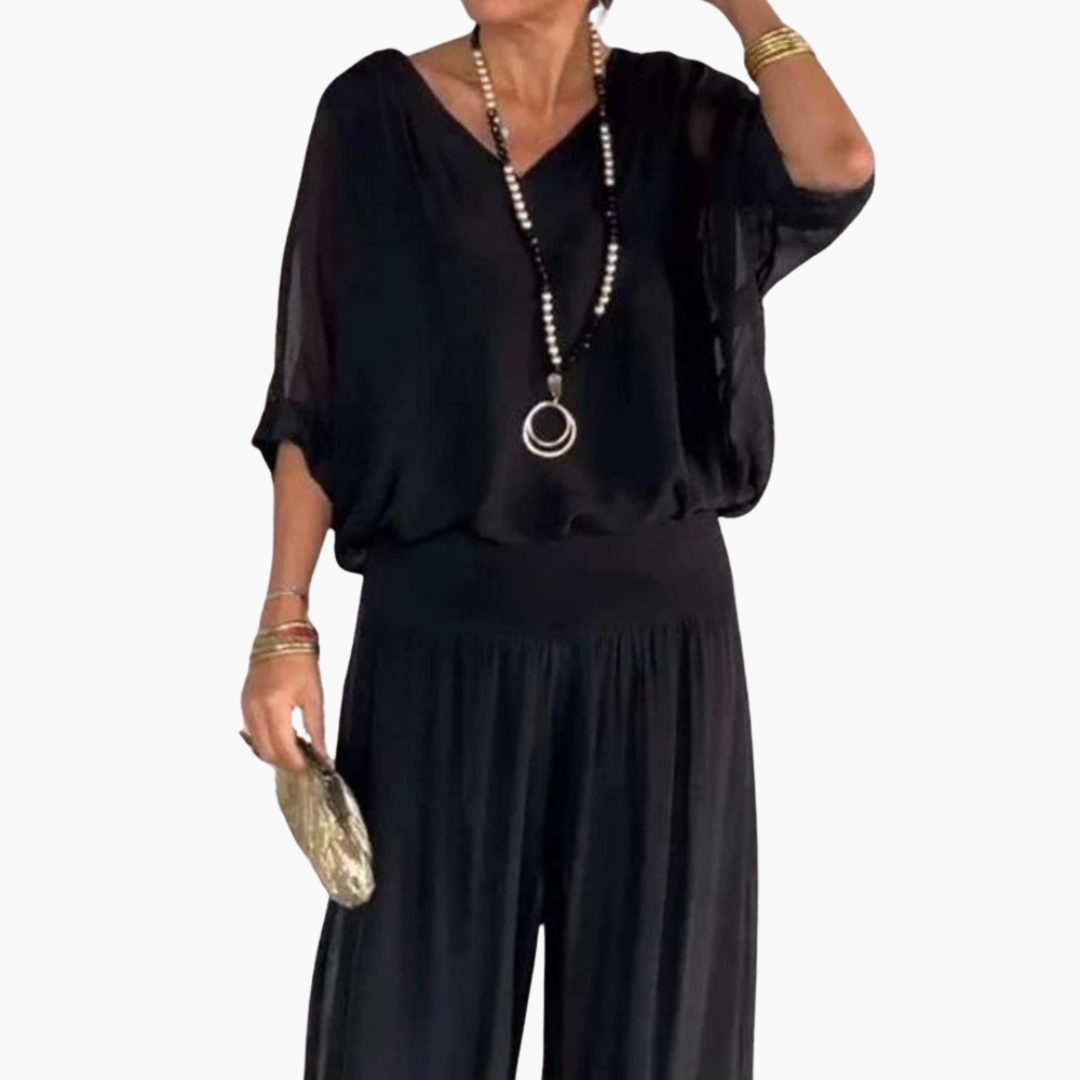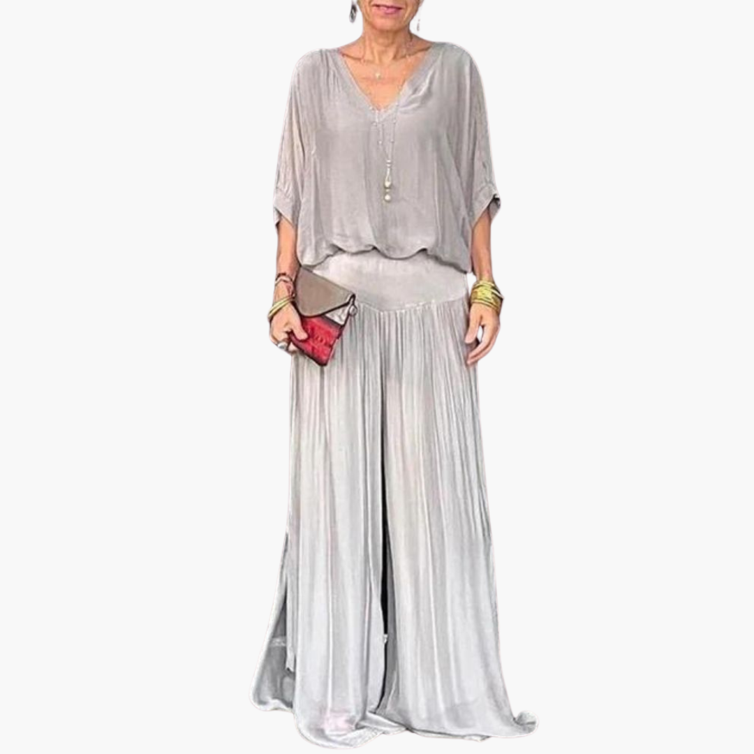 Verleihe deinem Look mit diesem traumhaften Boho-Zweiteiler einen Hauch von Freiheit und Eleganz. Leicht, fließend und mühelos stilvoll – dieser Zweiteiler sorgt für ein feminines Gefühl und einen selbstbewussten Auftritt. Ideal für sonnige Tage, entspannte Abende oder deinen nächsten Urlaub.