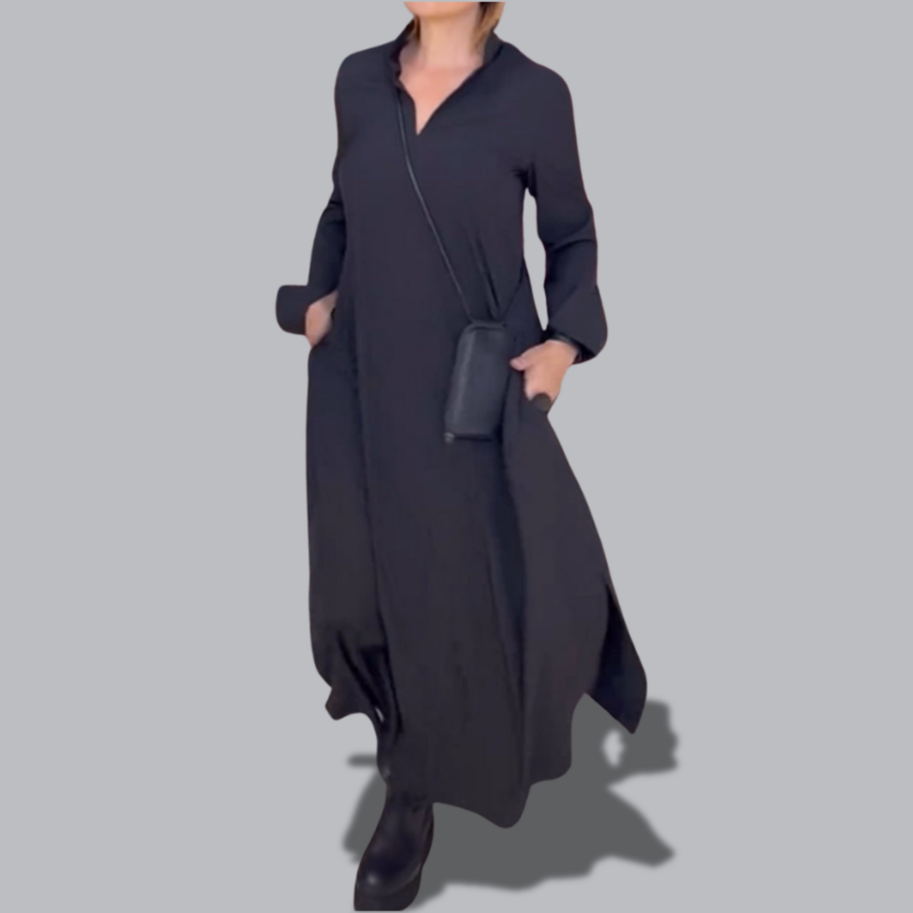 Unser beliebtes langes Kleid bietet dir das perfekte Gleichgewicht zwischen Stil und Bequemlichkeit. Mit seinem lockeren Schnitt, den eleganten Details und dem zeitlosen Design ist es die ideale Wahl für jeden Anlass – ob casual oder schick. Fühle dich schön und selbstbewusst in jeder Situation!