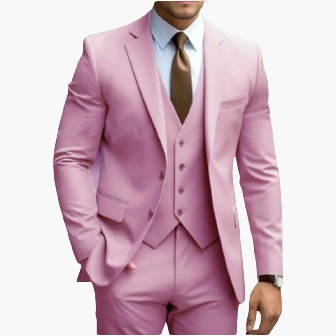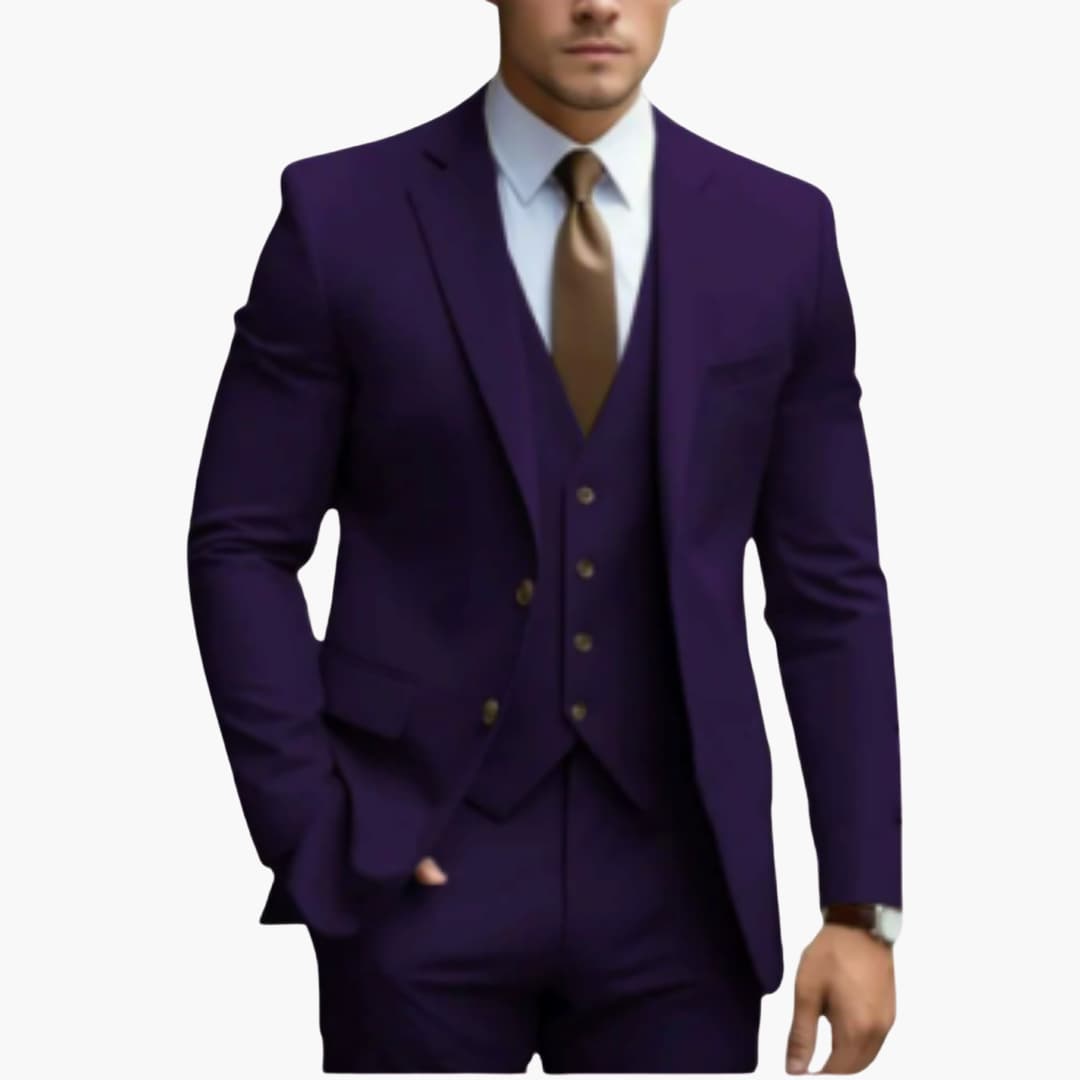 Setze bei Hochzeiten und festlichen Anlässen ein modisches Statement mit diesem eleganten 3-teiligen Anzug. Speziell für den modernen Gentleman entworfen, vereint er klassische Raffinesse mit einem zeitgemäßen Schnitt. Das Ergebnis ist ein Anzug, der Komfort und Stil auf höchstem Niveau verbindet – für einen Auftritt, der in Erinnerung bleibt.