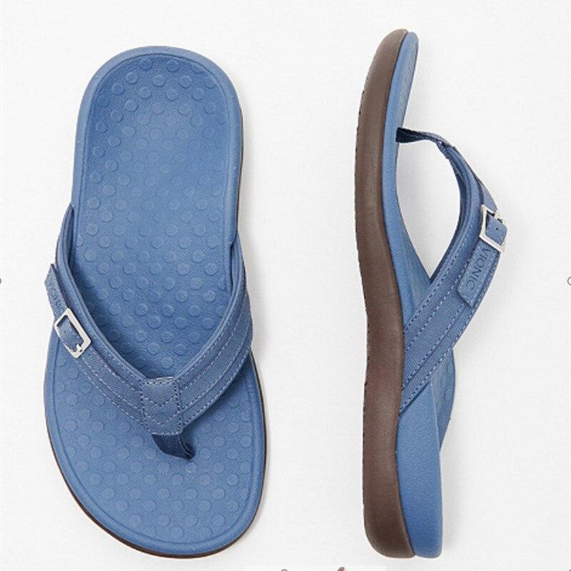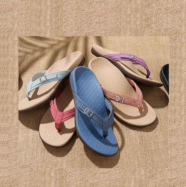 Optimaler Halt - Die stützendsten Schuhe, die Sie je kannten. Unser orthopädischer Schnallen-Flip-Flop bietet Komfort in drei Zonen mit maximaler Unterstützung des Fußgewölbes; Sie werden den Unterschied spüren.