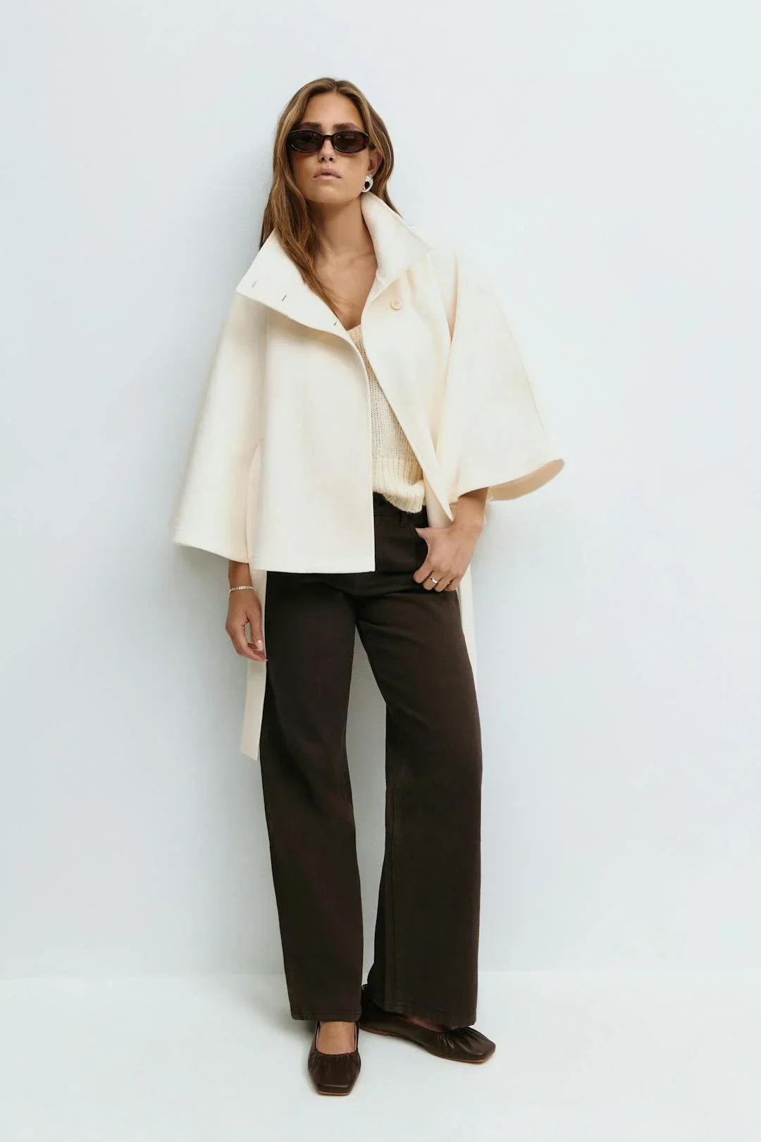 Entdecken Sie den modernen Chic mit unserem Damen Cape-Mantel. Perfekt, um Ihrem Outfit einen stilvollen Touch zu verleihen, während Sie gleichzeitig warm bleiben.