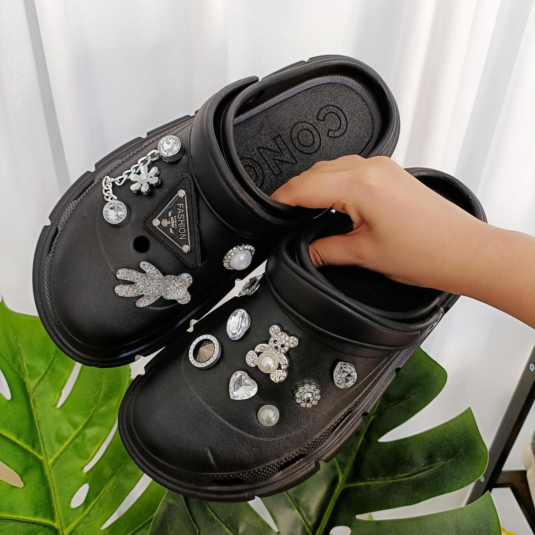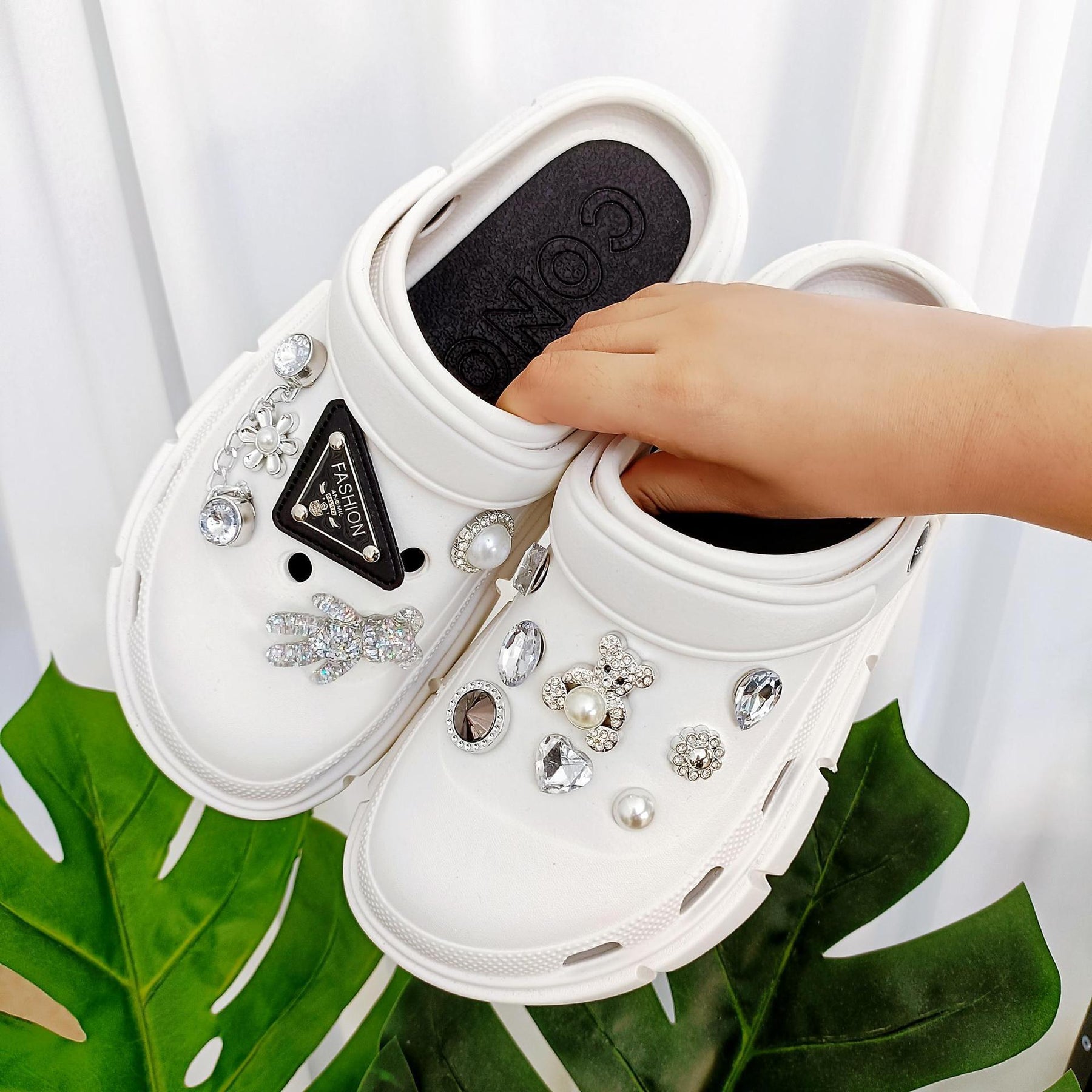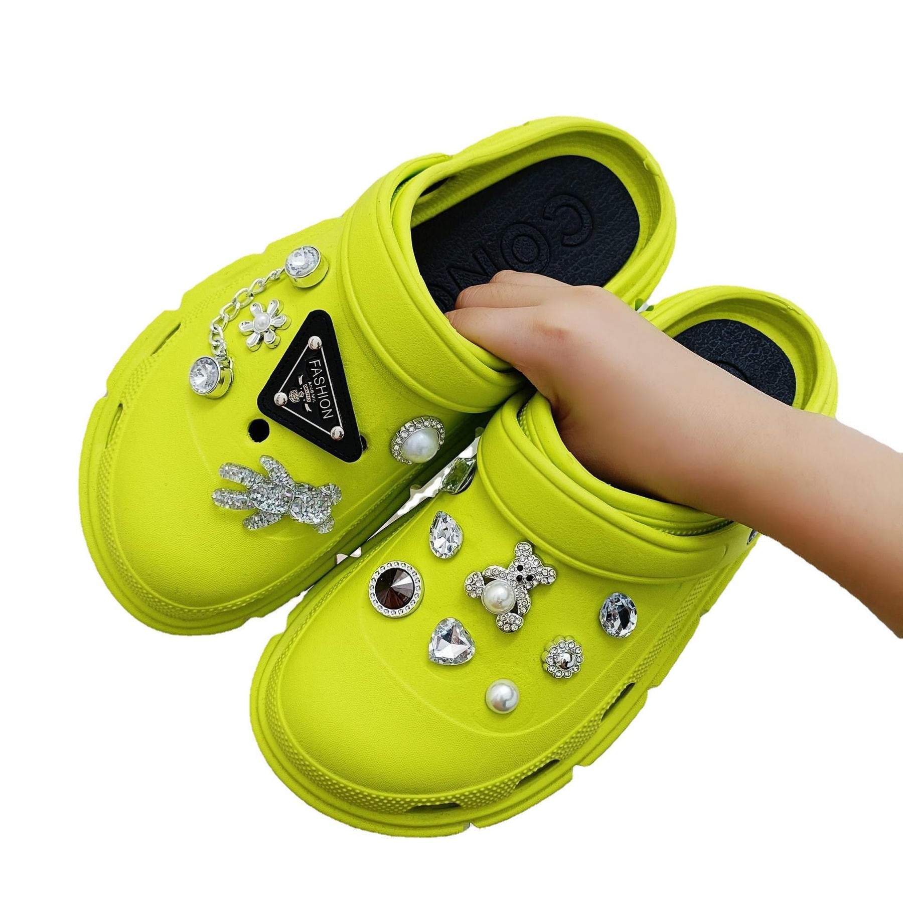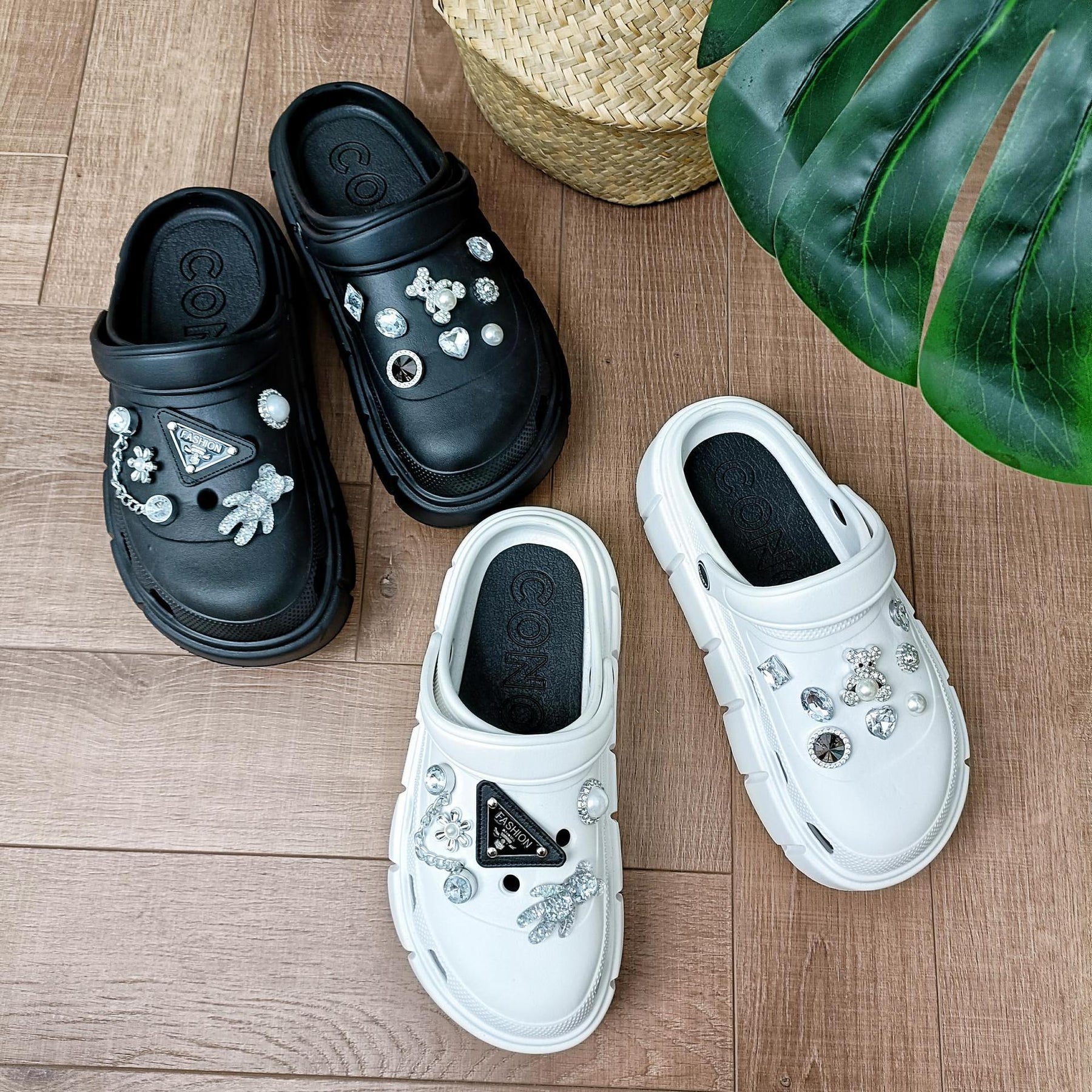- Stilvolle Dekoration: Die kreativen Strassverzierungen verleihen den Clogs einen glamourösen Look, der Aufmerksamkeit erregt.