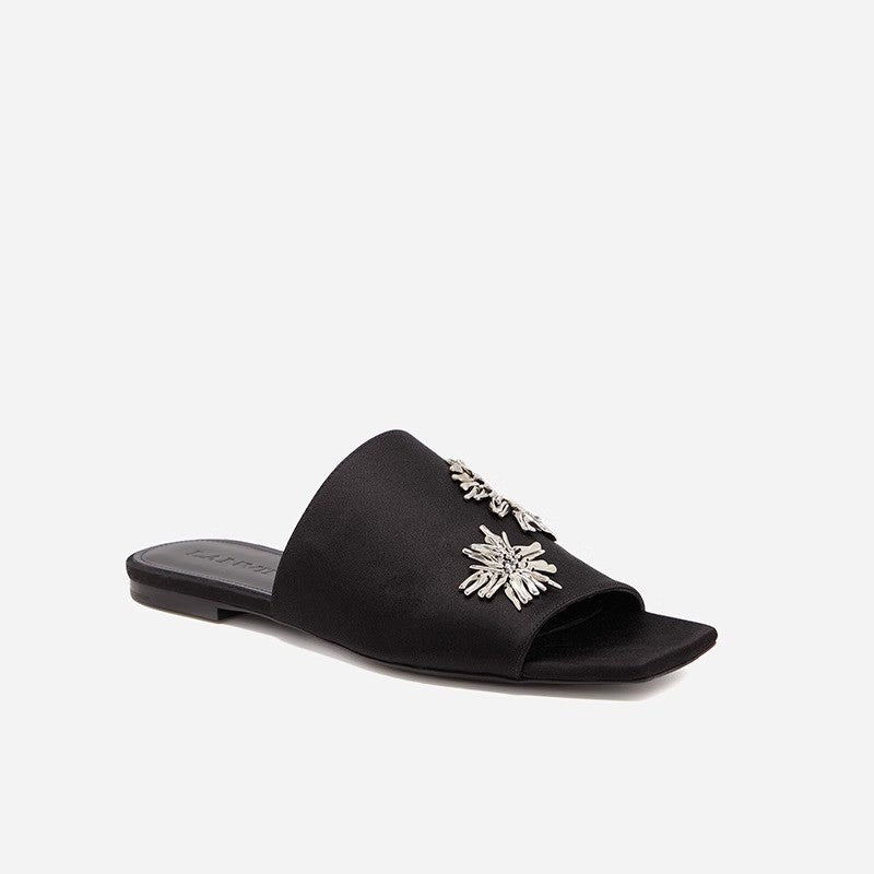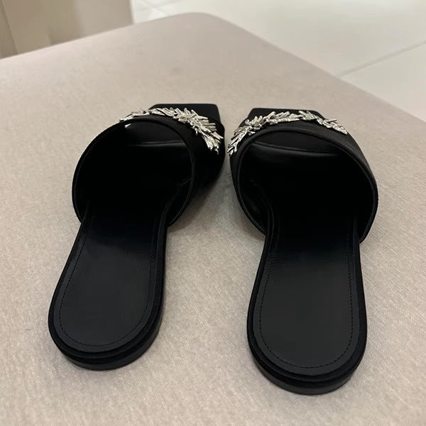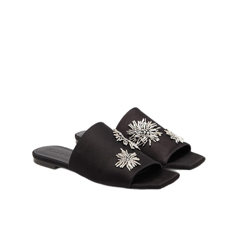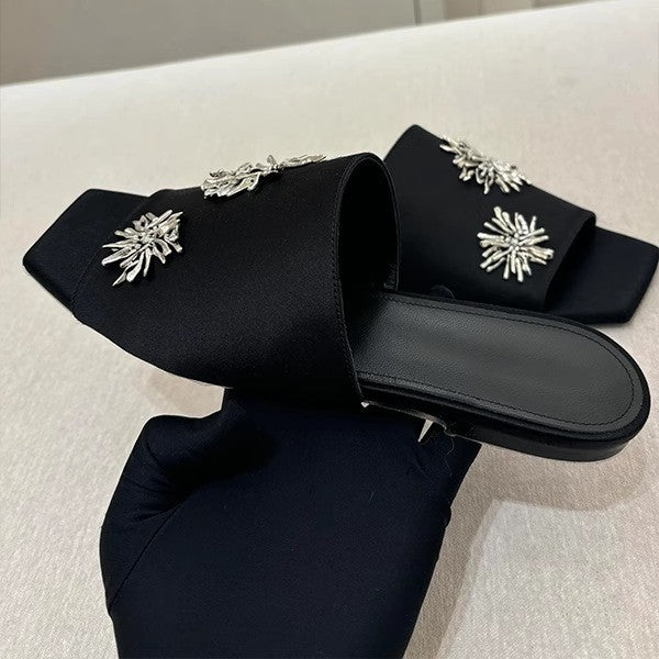 - Schimmernde Blütenapplikationen: Die dekorativen Elemente setzen einen stilvollen Akzent und machen die Pantoletten zum idealen Begleiter für besondere Anlässe.