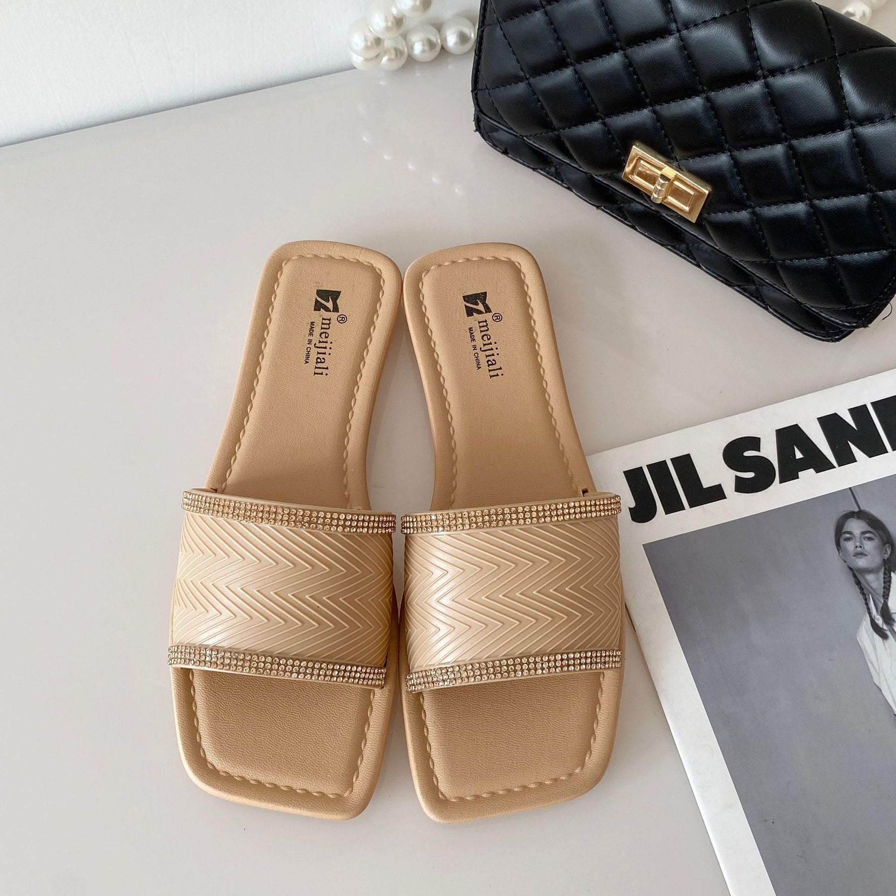 Damen Elegante und bequeme Pantoletten mit Strassverzierungen Fudus