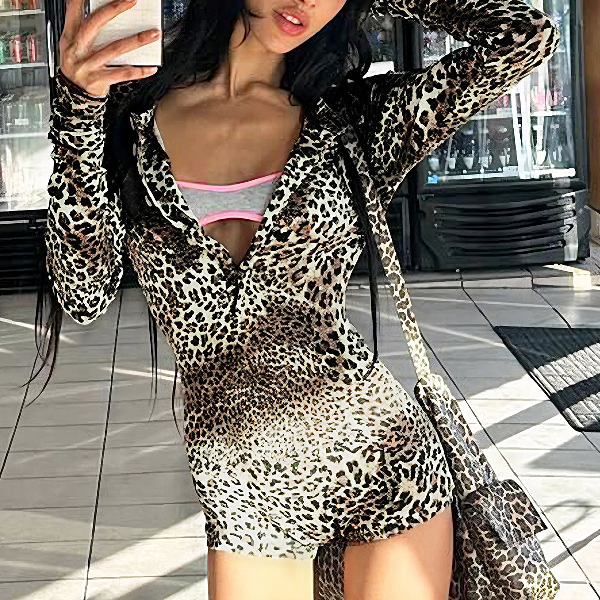 Dieser Damen Jumpsuit ist die perfekte Kombination aus Stil und Komfort. Das auffällige animalische Muster bringt einen Hauch von Wildheit in Ihre Garderobe, während der tiefe V-Ausschnitt eine elegante Silhouette zaubert.