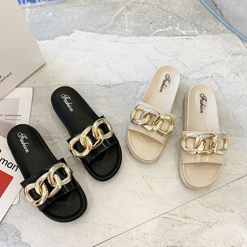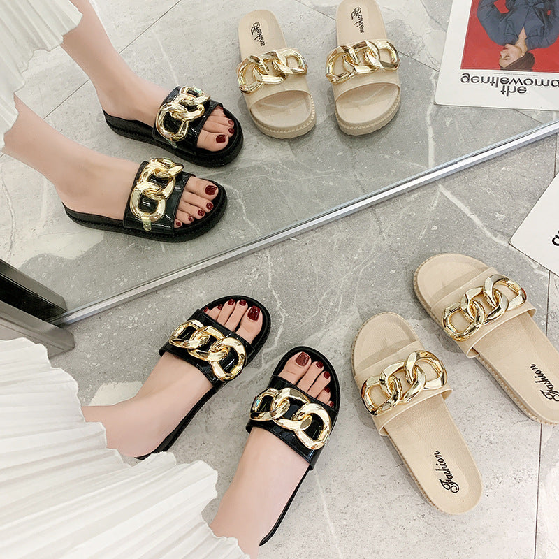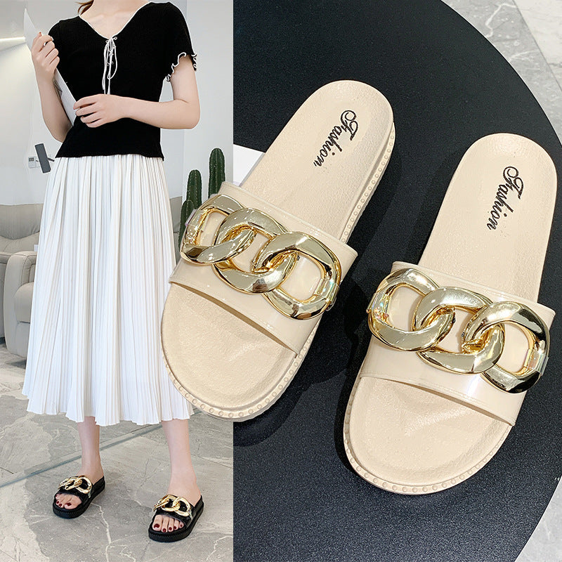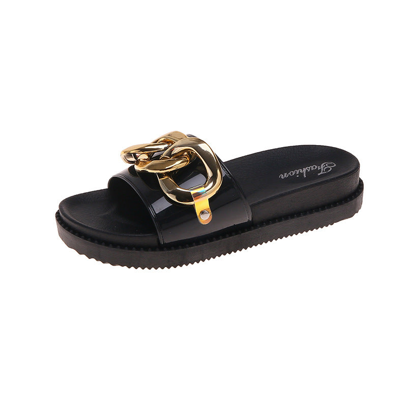 - Modische Kettenverzierung: Das auffällige Kettenmotiv verleiht den Pantoletten einen Hauch von Eleganz und macht sie zum perfekten Accessoire für jede Sommergarderobe.