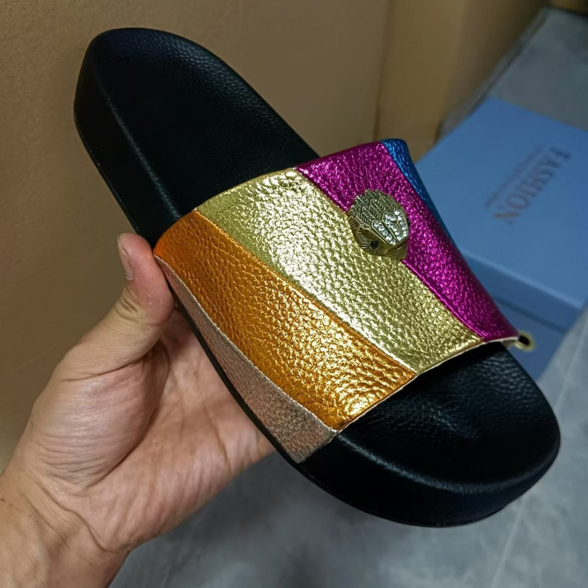 - Modisches Design: Die Kombination aus verschiedenen Farbtönen macht diese Sandalen zum idealen Begleiter für jedes sommerliche Outfit.