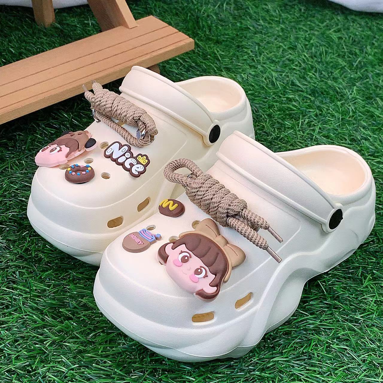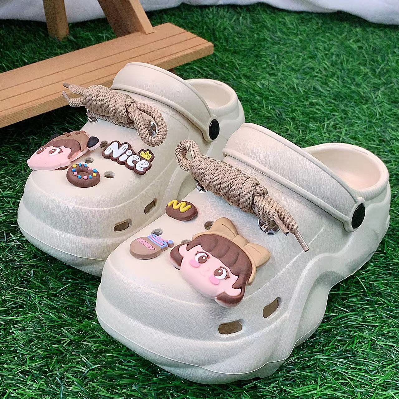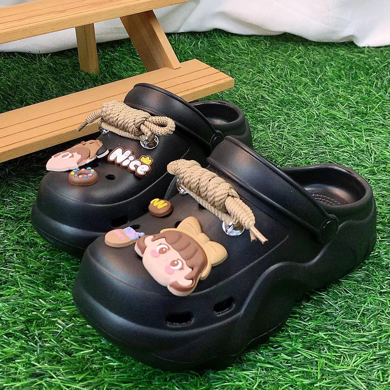 - Modische Schnürung: Das kreative Schnürsystem sorgt nicht nur für einen sicheren Halt, sondern verleiht den Clogs auch eine lässige und modische Note.