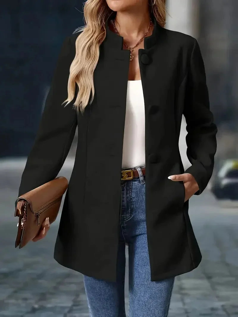 Damenmantel mit Stehkragen und eleganter Knopfleiste