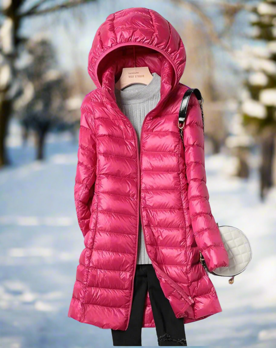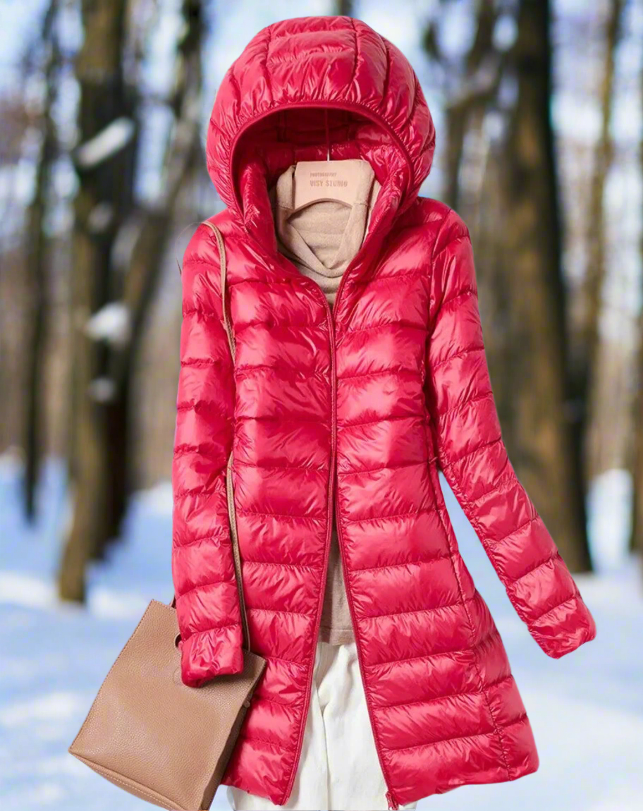 Die Jacke ist aus hochwertigem, leichtem Material gefertigt. Der vielseitige Stil mit Kapuze bietet zusätzlichen Schutz vor der Kälte, perfekt für den Alltag oder Outdoor-Abenteuer. Zwei Seitentaschen bieten ausreichend Platz für Ihre Essentials, sodass Sie unterwegs die Hände frei haben.