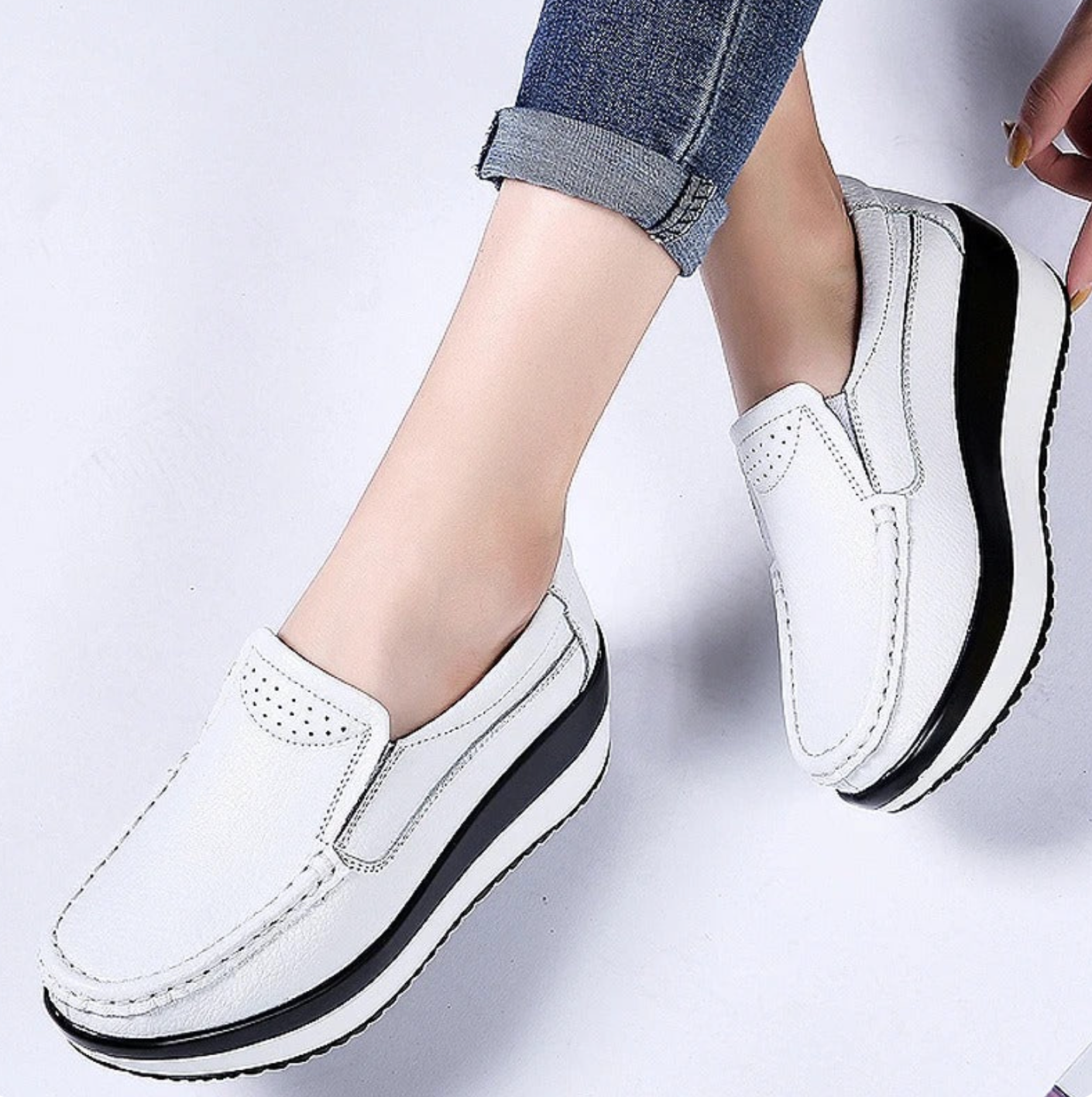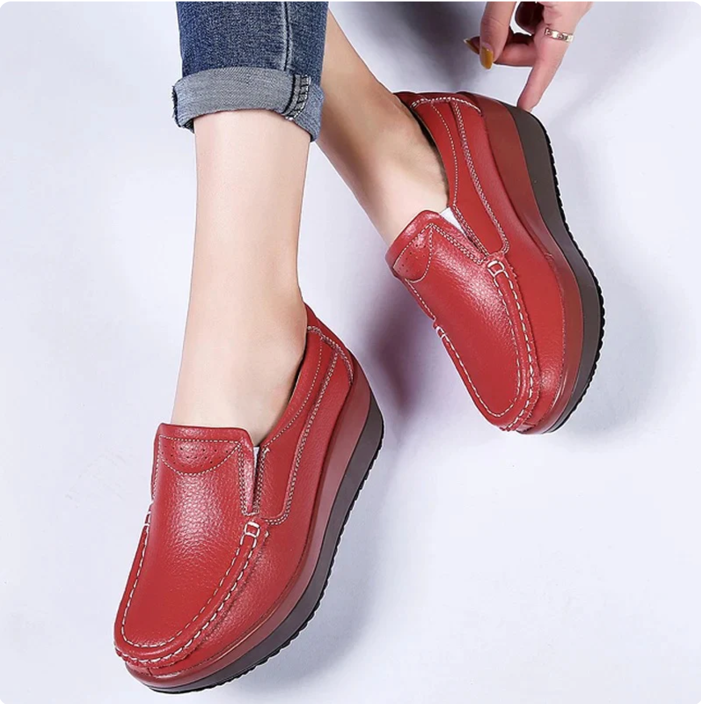 Erleben Sie die sinnliche Verbindung von modernem Design und innovativer Orthopädie. Die ElegantStep Mokassins wurden speziell entwickelt, um Ihre Haltung zu verbessern und ein gesundes, sicheres Gangbild zu gewährleisten – ob beim gemütlichen Spaziergang oder beim aktiven Laufen. Durch die einzigartige Kombination aus einem extra entwickelten Absatz und einer breiteren, rutschfesten Sohle wird Ihr Fuß perfekt unterstützt und der Druck optimal verteilt. Fühlen Sie, wie sich bereits nach wenigen Wochen Ihr Gang verändert und Ihre Haltung korrigiert wird – ein unverzichtbares Accessoire, das nicht nur Ihr Wohlbefinden, sondern auch Ihren Look aufwertet.