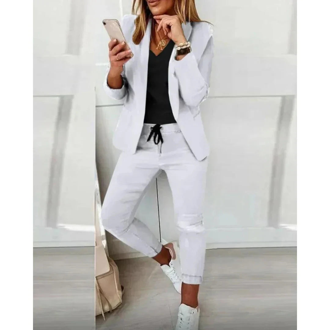 Unser beliebtes Estrella-Set bietet die perfekte Mischung aus Stil und Komfort. Es besteht aus einer schmal geschnittenen Jacke und einer mittelhohen Hose mit Kordelzug und bietet einen modernen Look, ohne Kompromisse bei der Bequemlichkeit einzugehen - ideal für jede Gelegenheit.