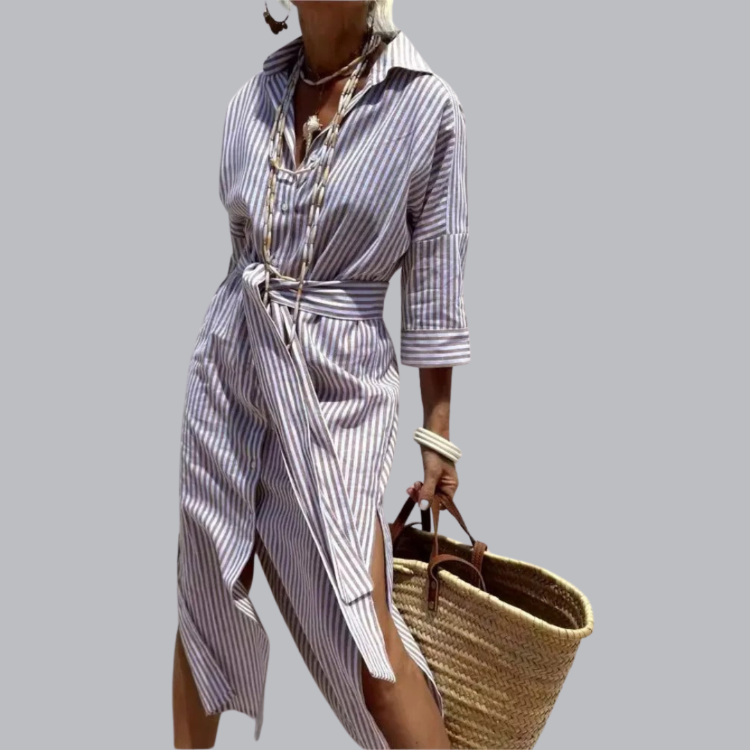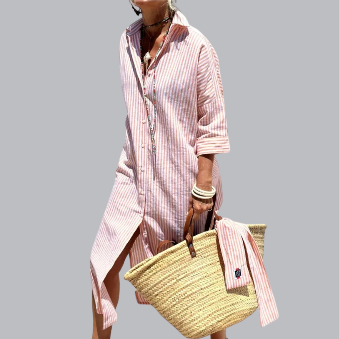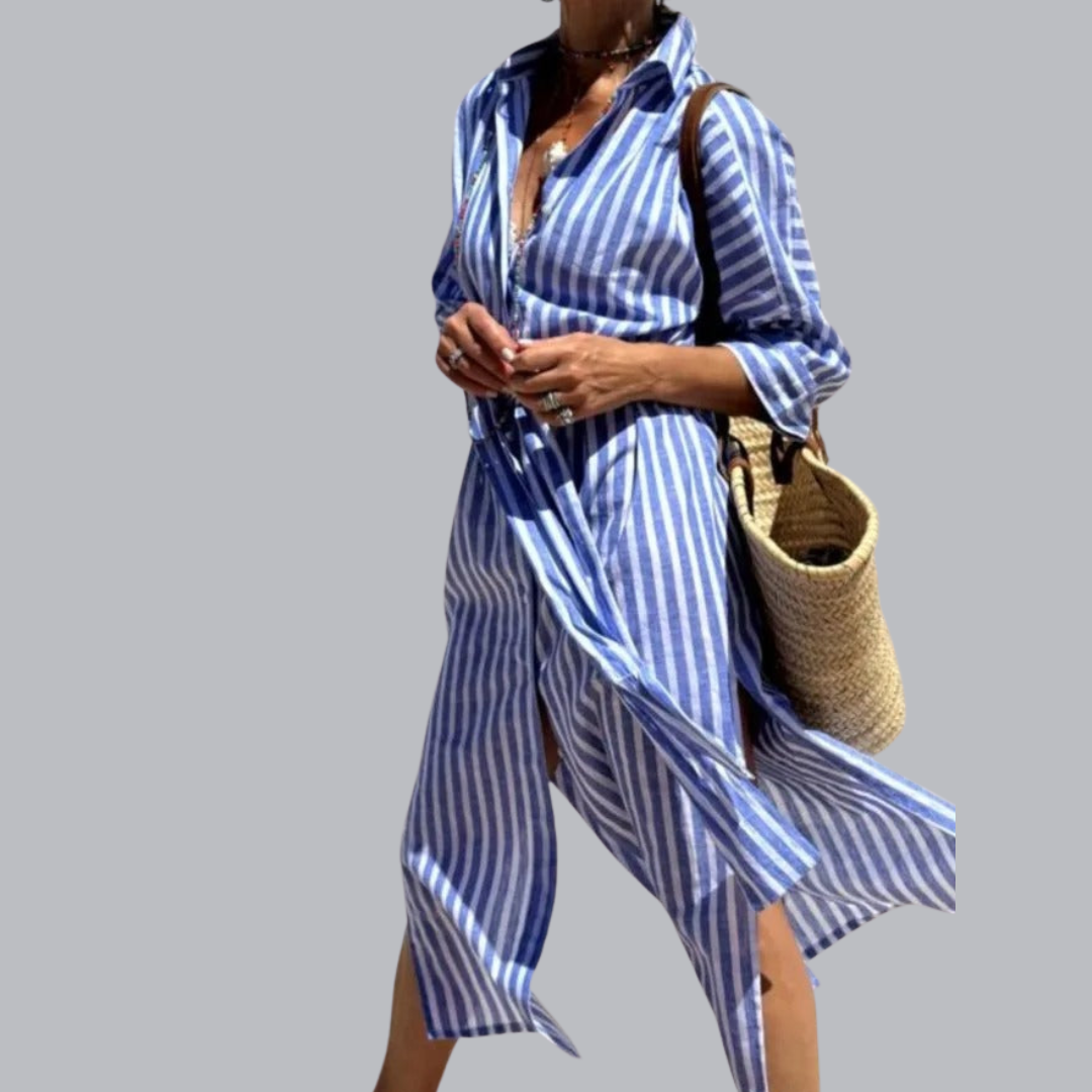 Aufgrund unserer Geschäftsschließung bekommst du Frida Gestreifte Kleid mit Kragen mit 70 % Rabatt. Hol es dir jetzt und genieße den Sommer in vollen Zügen!