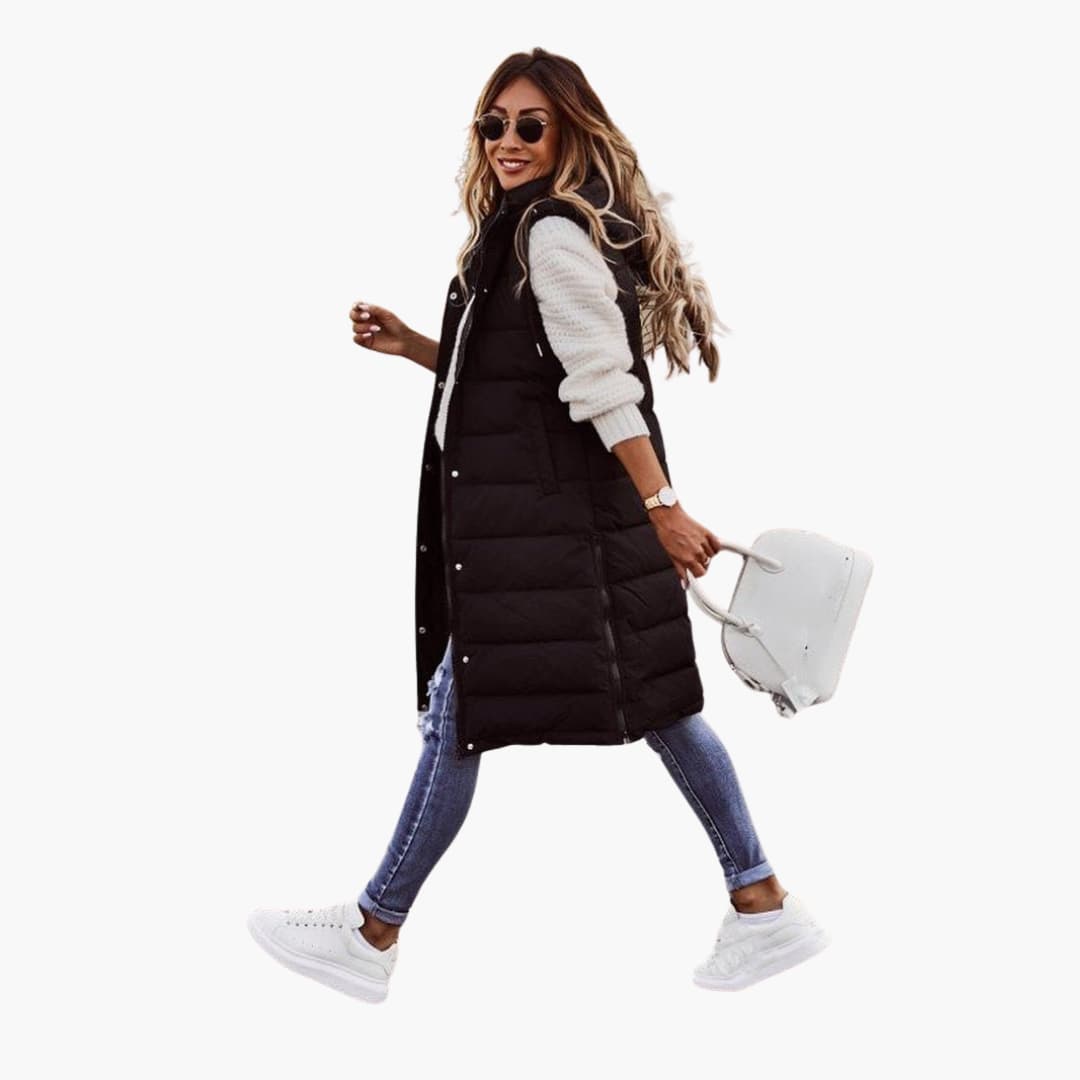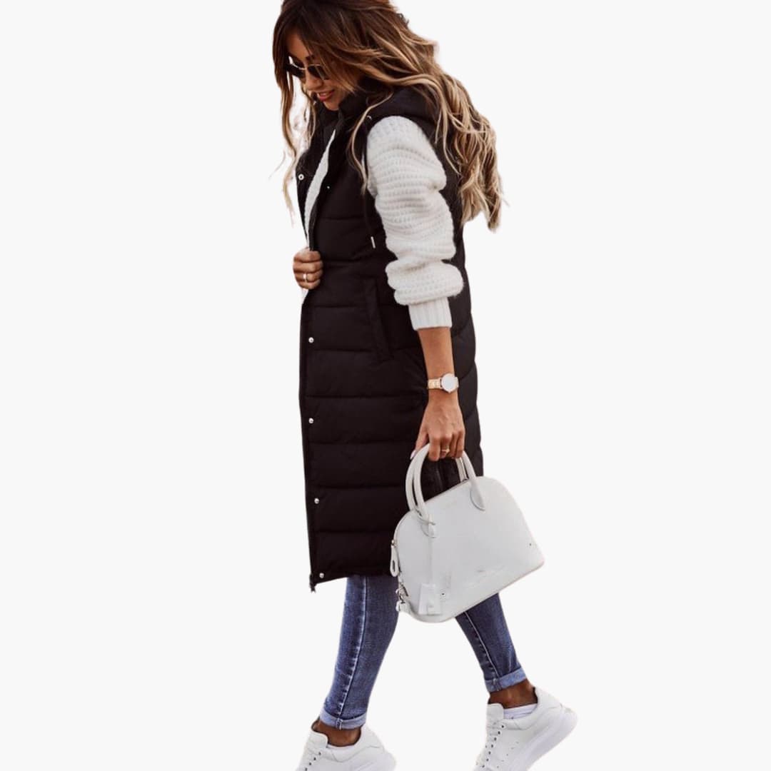 Die gesteppt lange Weste für Damen ist ein knielanges Kleidungsstück mit strukturierter Oberfläche und klarer Form. Sie eignet sich ideal zum Kombinieren, da sie zusätzlichen Schutz in kühleren Monaten bietet und sich mühelos über verschiedene Outfits tragen lässt. Entwickelt für Frauen, die Wert auf praktische Passform und funktionale Details legen.