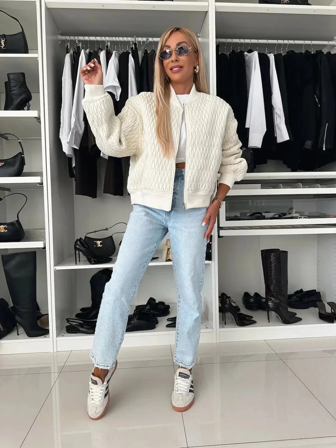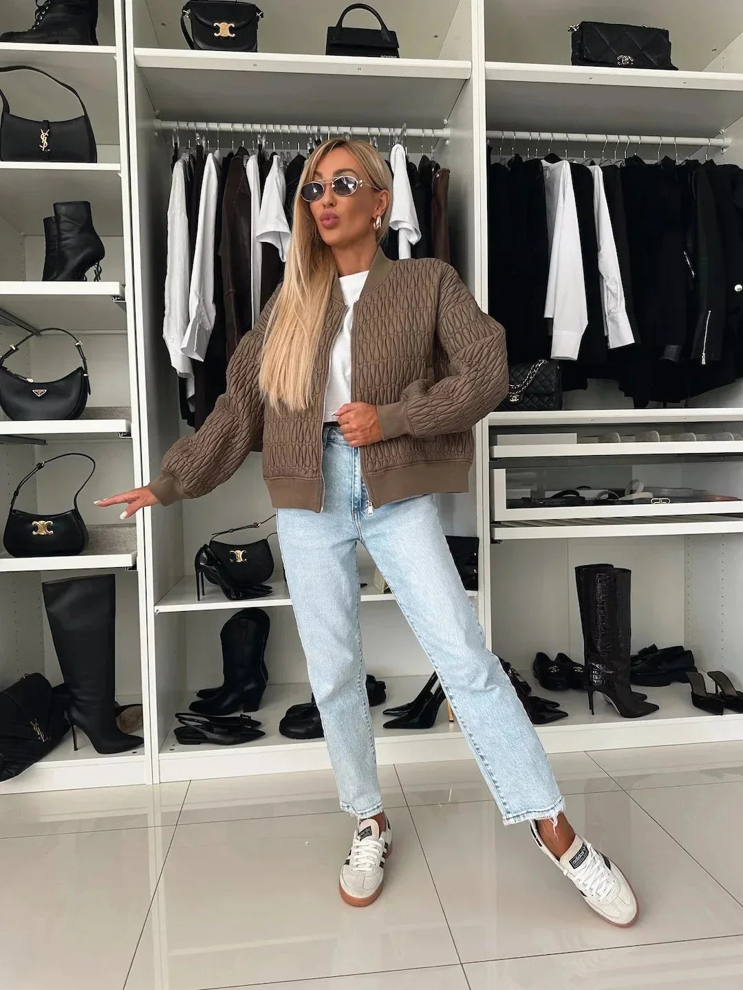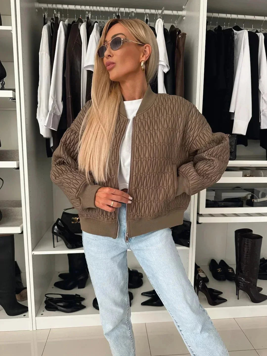 Entdecken Sie das perfekte Zusammenspiel von Stil und Komfort mit dieser Damen Quilted Bomberjacke. Die Jacke passt sich Ihrem Alltag mühelos an und bietet dabei einen lässigen, modernen Look. Perfekt für kühle Abende oder gemütliche Cafés.