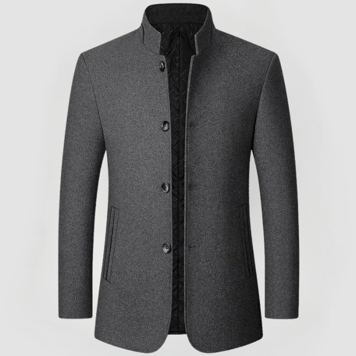 - Strukturierter Stehkragen: Verleiht Eleganz und schützt vor Kälte.