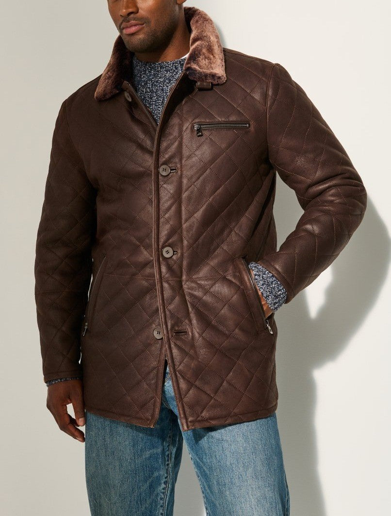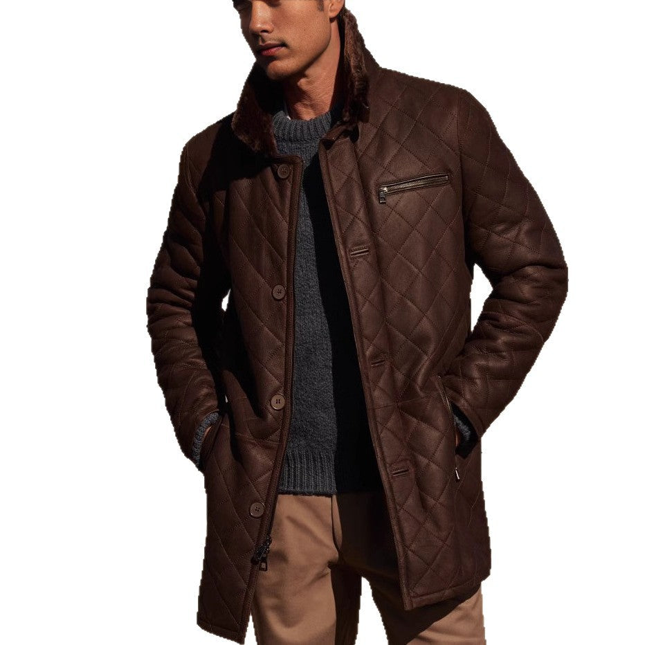Entdecken Sie den perfekten Begleiter für die kälteren Monate mit unserem Herren gesteppter Kunstleder-Mantel mit Teddyfell-Kragen von Aliams. Dieser elegante Mantel kombiniert stilvolles Design mit erstklassigem Komfort und Wärme.