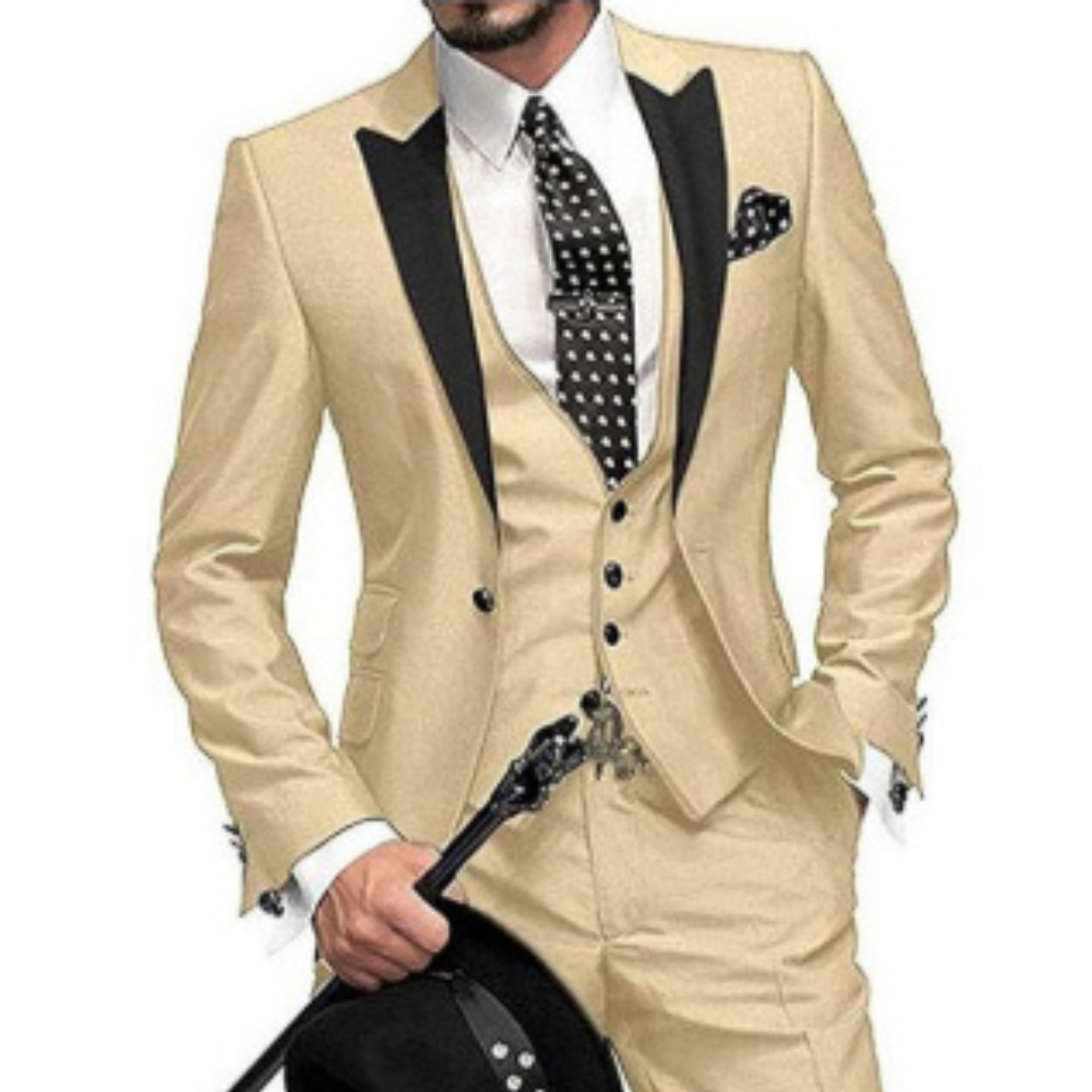 Stilvoll auftreten – ganz gleich ob bei einer Hochzeit, einem Geschäftsessen oder einem festlichen Empfang. Dieses dreiteilige Herren-Set vereint klassische Eleganz mit moderner Raffinesse. Dank hochwertiger Materialien und durchdachtem Design gelingt jeder Auftritt mit natürlicher Souveränität.