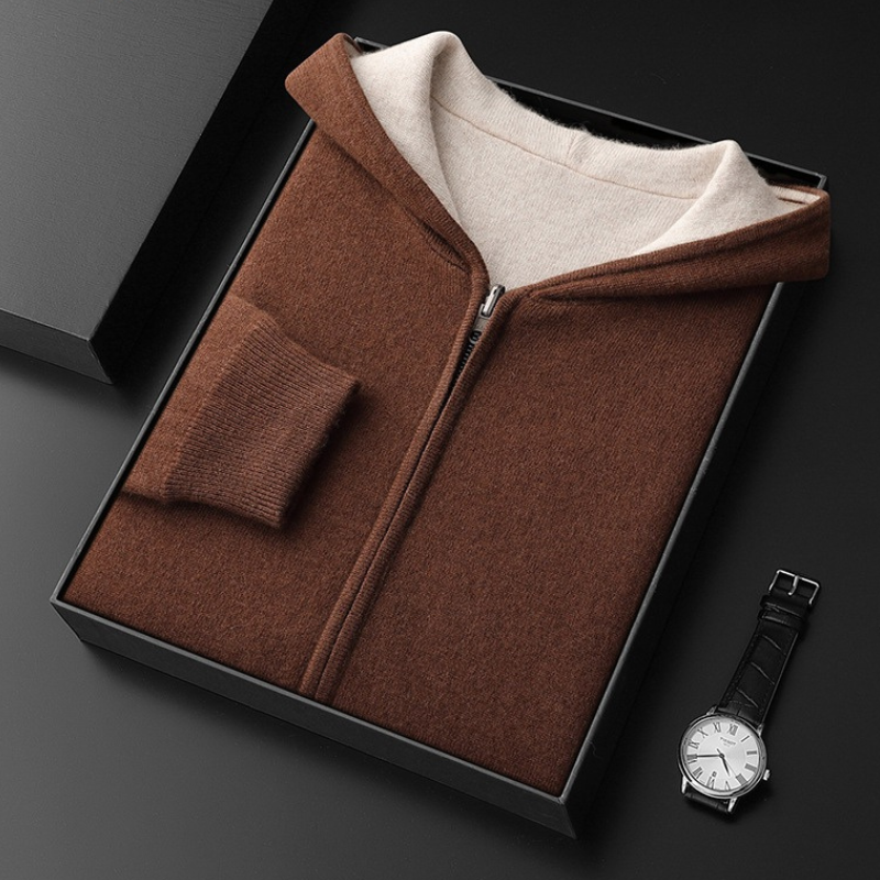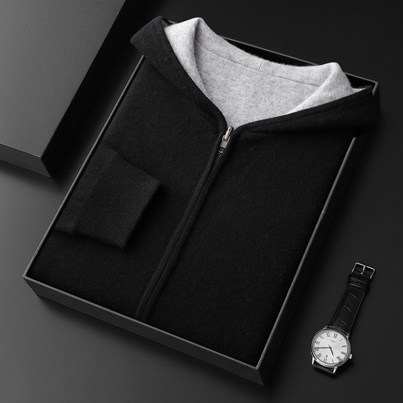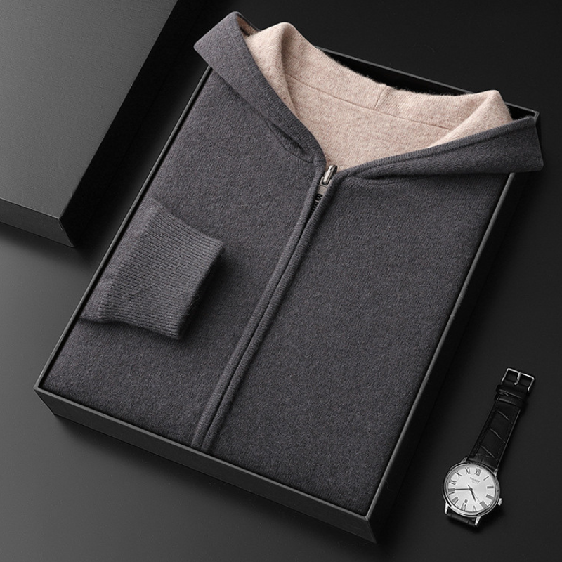 Herren Kaschmir-Wolle Kapuzenpullover mit Reißverschluss - Premium Qualität