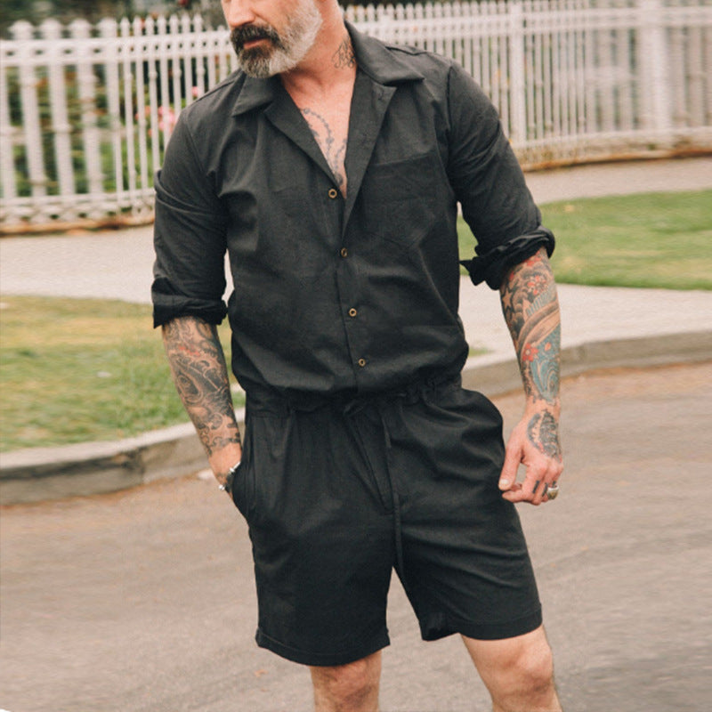 Herren luftiges Freizeit-Set mit Kurzarmhemd und lässigen Shorts Aliams
