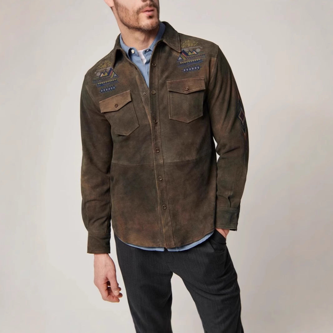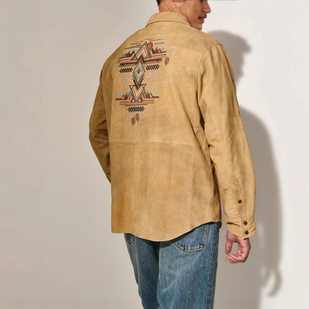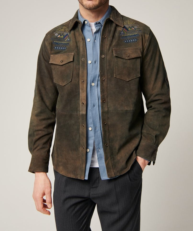 Herren Wildlederhemd mit detaillierten Ethno-Stickereien Aliams