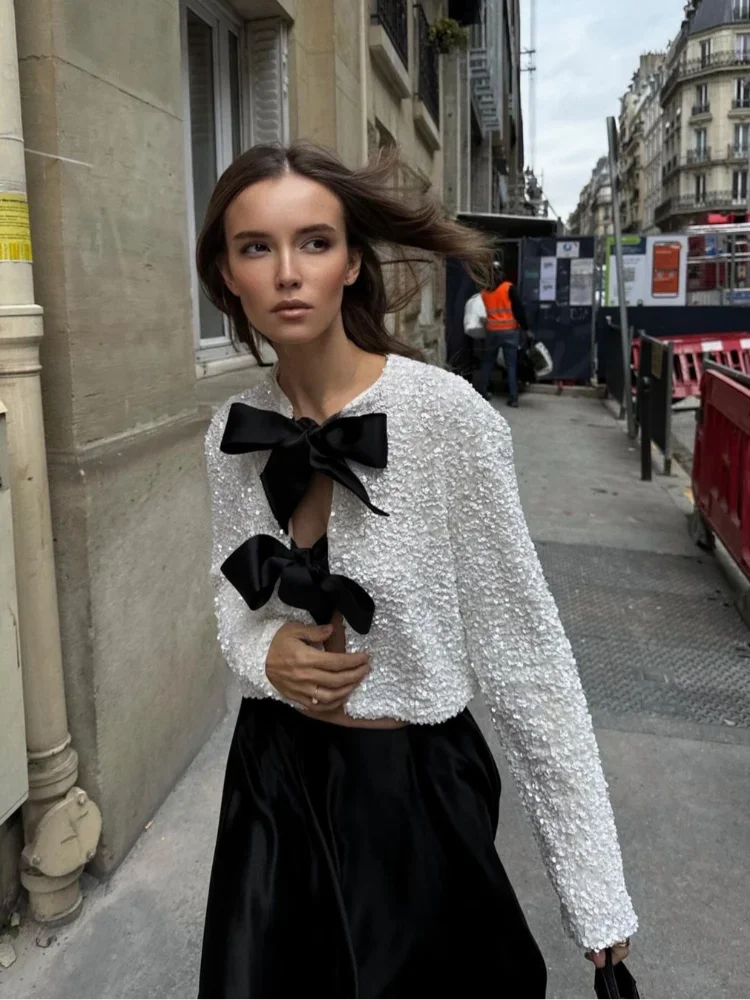 Einzigartiges Schleifen-Detail: ein verspielter Akzent, der den Look mit einem schicken Flair hebt.