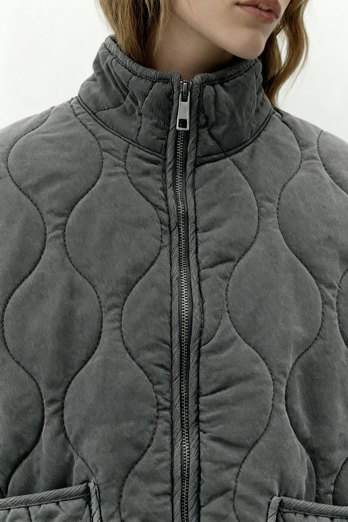 Diese moderne steppjacke überzeugt durch ihr zeitloses design und hohen tragekomfort. die dekorativen steppnähte verleihen der jacke einen edlen look, während die großen aufgesetzten taschen praktische funktionalität bieten. durch den hohen kragen und die lockere passform eignet sie sich perfekt für kühle tage und lässt sich vielseitig kombinieren – von casual bis urban chic.