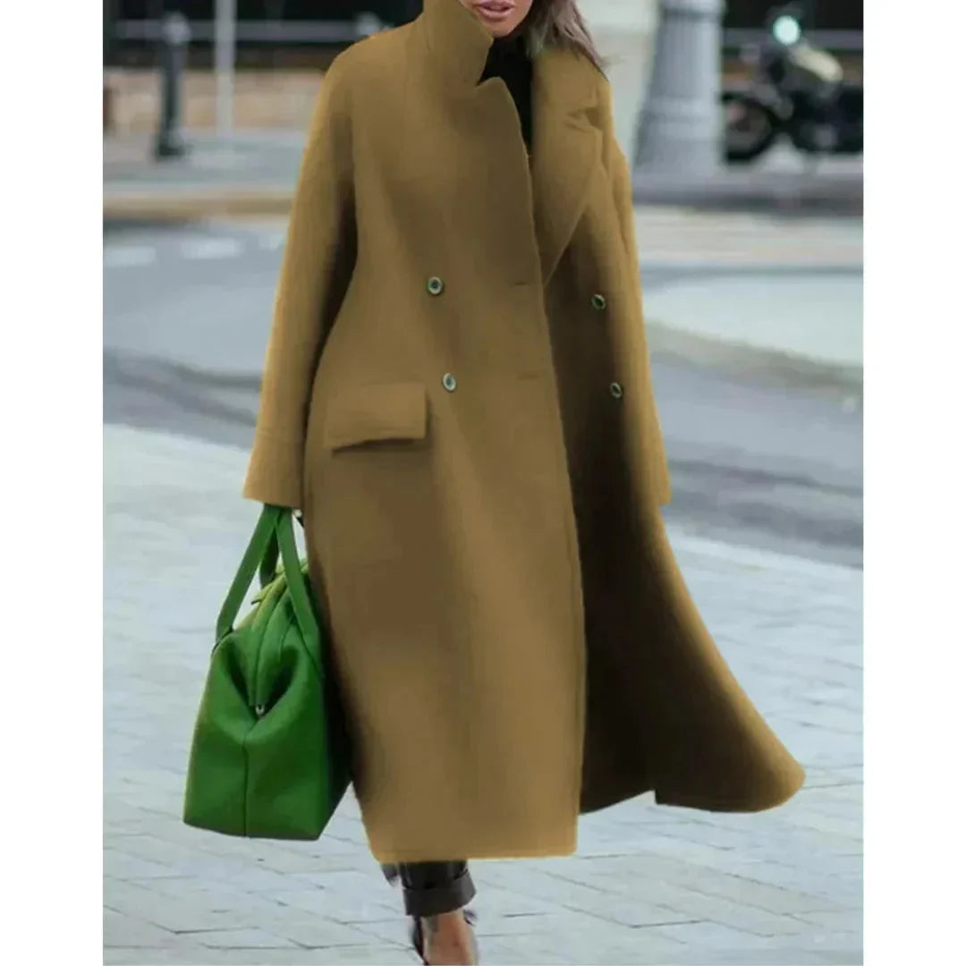 Langer Damenmantel mit Knopfleiste und praktischen Taschen