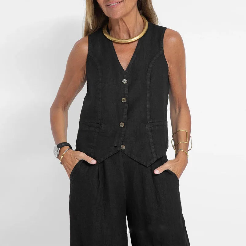 Leinen-Set mit Weste | Weite Hose | Moderner Minimalismus