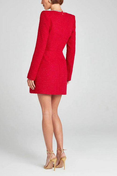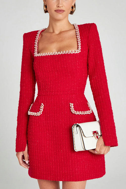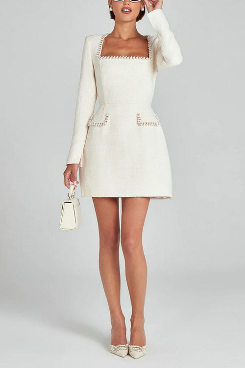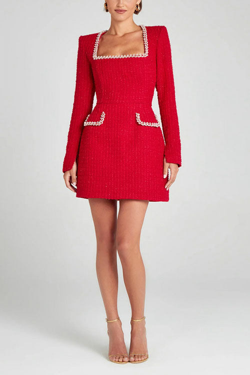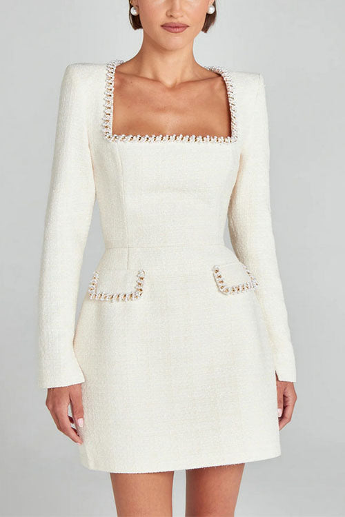 Lucilyn - Festliches Kleid Damen U-Ausschnitt Perlen