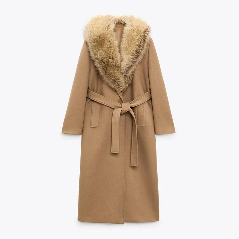 Mantel mit Kunstpelzkragen | Taillengürtel | Elegante Silhouette