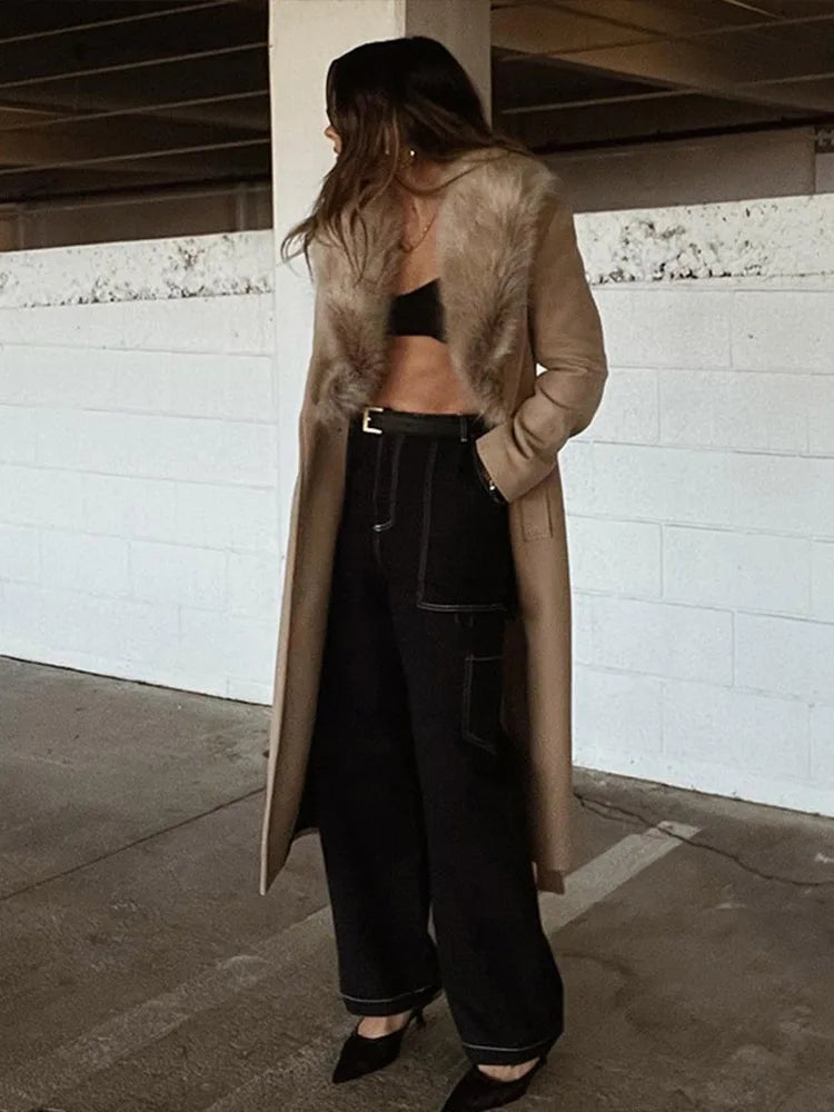 Kunstpelzkragen: Verleiht dem Look eine luxuriöse Note.