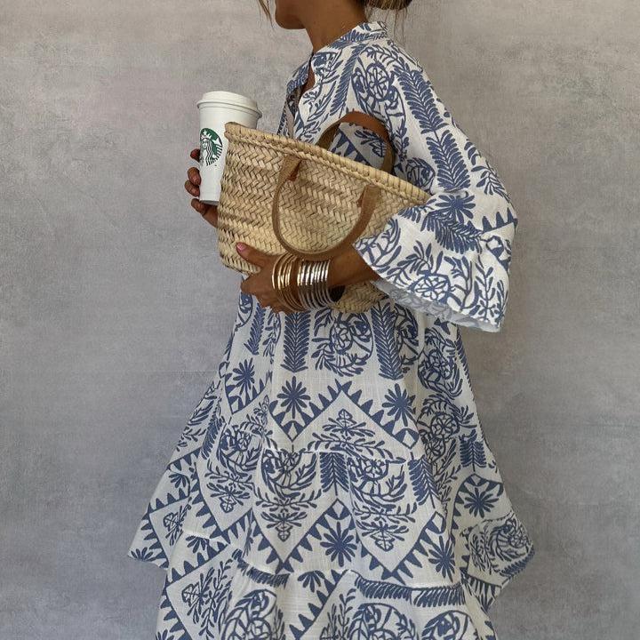 Unsere Produkte sind aus hochwertigen Materialien wie Baumwolle, Seide und Leinen gefertigt. Um die Qualität und Langlebigkeit dieser edlen Stoffe zu bewahren, empfehlen wir, sie bei maximal 30 Grad in der Waschmaschine zu waschen. So bleibt Ihre Kleidung lange schön und fühlt sich immer angenehm auf der Haut an.