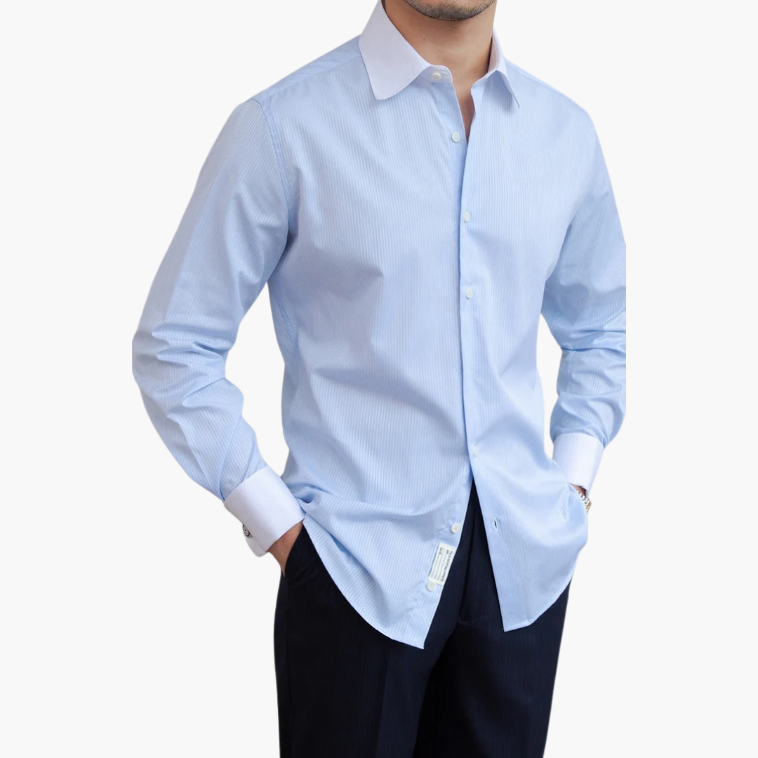 Ein Stil-Statement mit Haltung – dieses Herrenhemd im Old-Money-Stil verkörpert klassische Eleganz und moderne Lässigkeit zugleich. Die edlen Streifen, die hochwertige Baumwolle und der perfekte Schnitt verleihen jedem Auftritt Charakter und Selbstbewusstsein – ob beim Business-Meeting oder Wochenendbrunch.