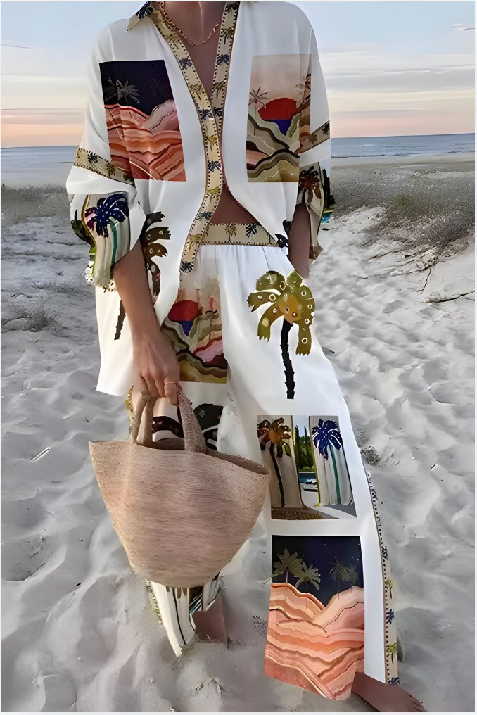 Das schicke Olive Set mit seinen ausgefallenen Mustern ist ideal für Damen, die ihren eigenen Stil zeigen möchten