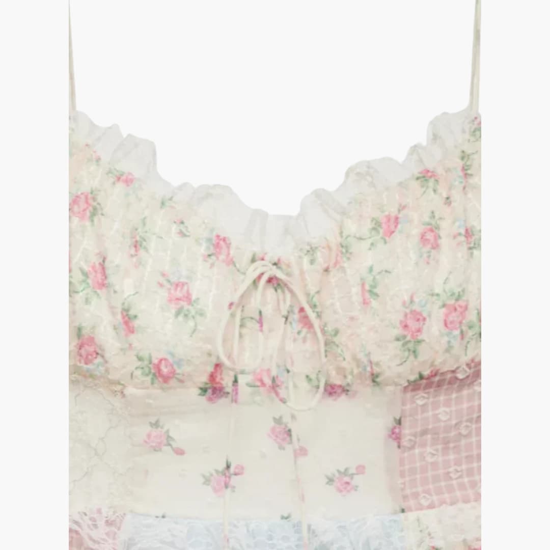 Patchwork Maxikleid - Damen Sommerkleid mit Spaghettiträgern