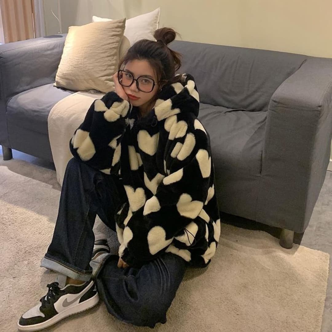 Hüllen Sie sich in Stil und Komfort mit dieser kuscheligen herzförmigen Jacke. Perfekt für Freizeitaktivitäten oder zum Entspannen zu Hause, kombiniert ihr einzigartiges Design verspielte Ästhetik mit Wärme und macht sie zu einem unverzichtbaren Kleidungsstück für diejenigen, die ihre Individualität ausdrücken möchten.
