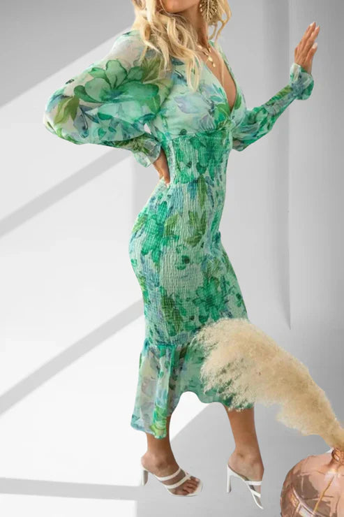 Schmales Midikleid | Volant-Saum | Florale Eleganz