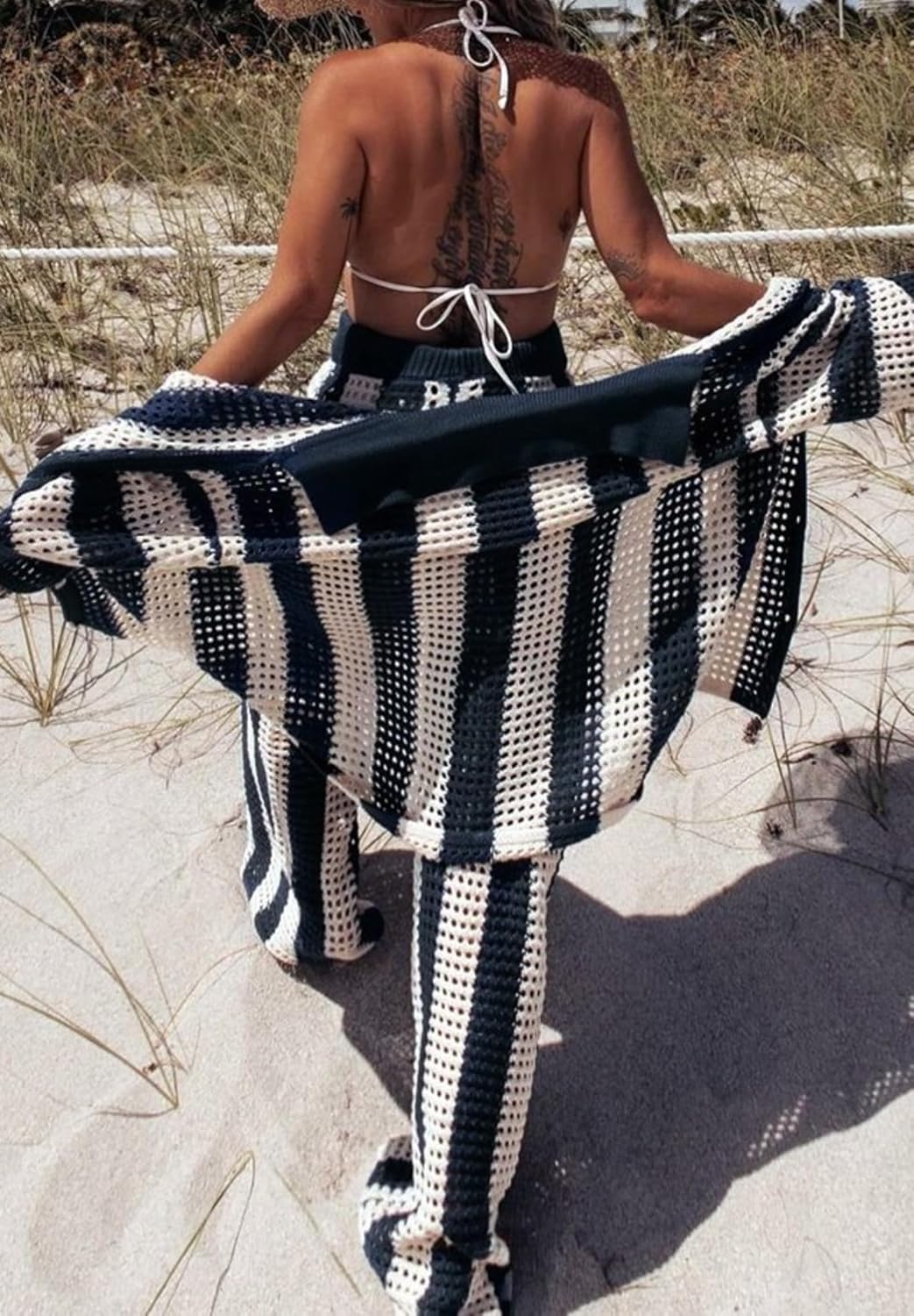 Luftig, mutig und wunderschön gestreift – dieses häkelset fängt die unbeschwerte energie des strandes mit stilvoller leichtigkeit ein. die lockere silhouette und das atmungsaktive gewebe machen es perfekt für sonnige ausflüge, entspannte nachmittage oder spaziergänge an der küste. ob am meer oder zu hause – dieses auffällige set lässt dich frei bewegen und großartig fühlen.