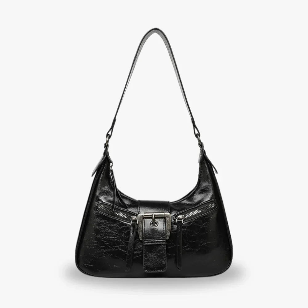 Zwei Front-Reißverschlusstaschen + dekorative Schnallenlasche (typischer Y2K-Look)