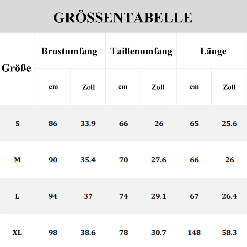 | Größe | Brust (cm) | Taille (cm) | Hüfte (cm) |
