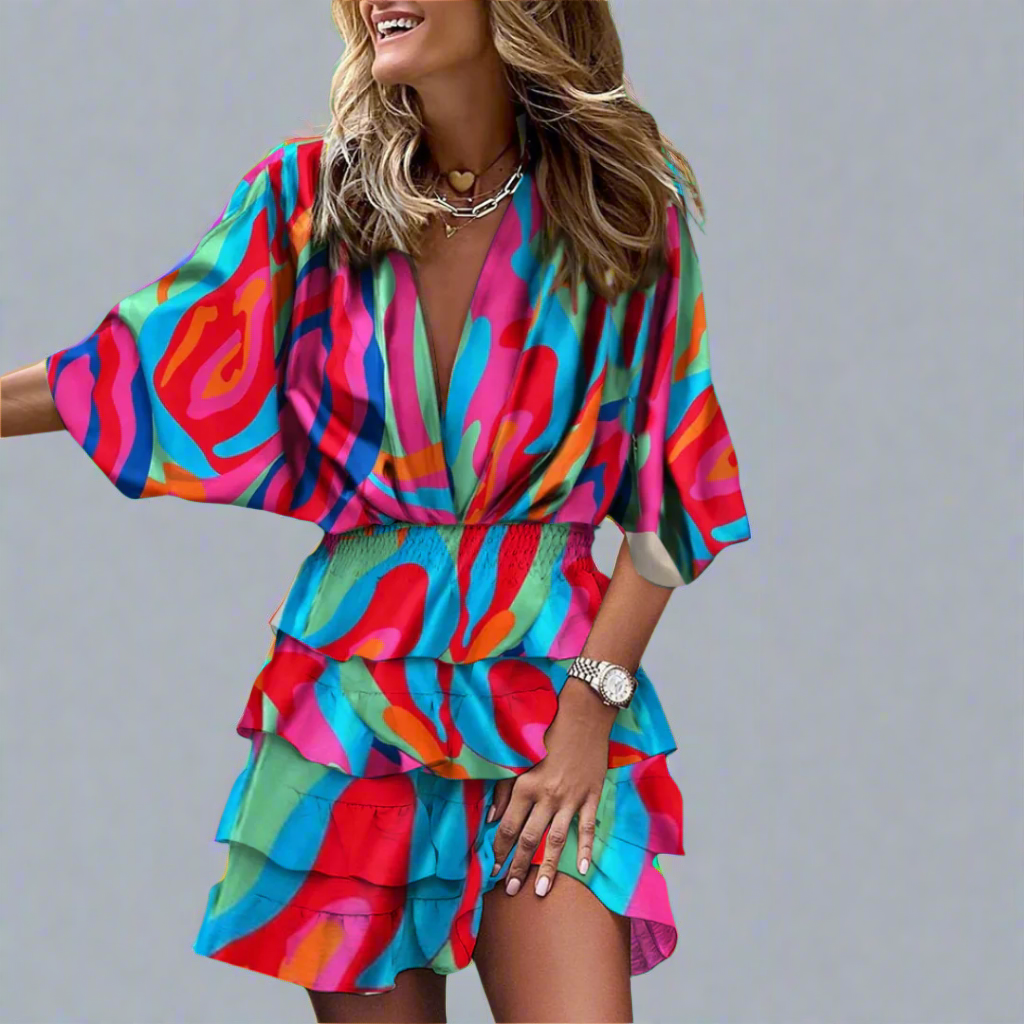 Unser beliebtes Minikleid bringt frischen Wind in deinen Kleiderschrank – perfekt für alle, die mit wenig Aufwand richtig stylisch aussehen wollen. Leicht, schmeichelnd und voller Ausstrahlung – dein neuer Lieblingslook wartet schon.